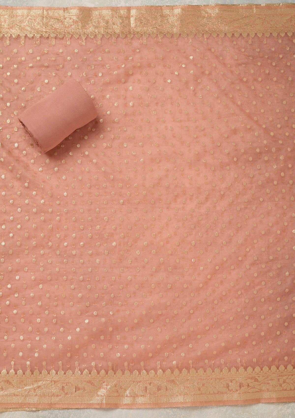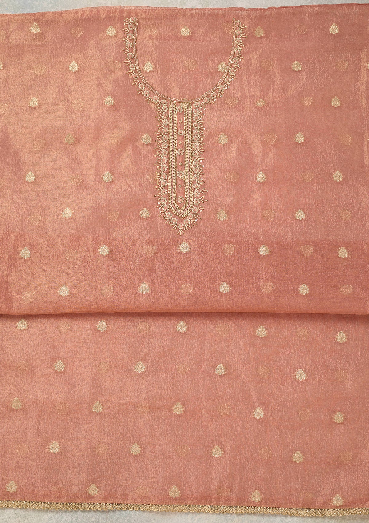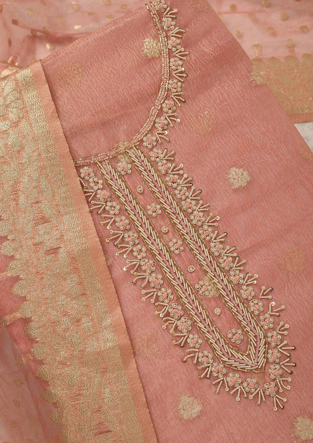 Peach Pearlwork Tissue Unstitched Salwar Suit