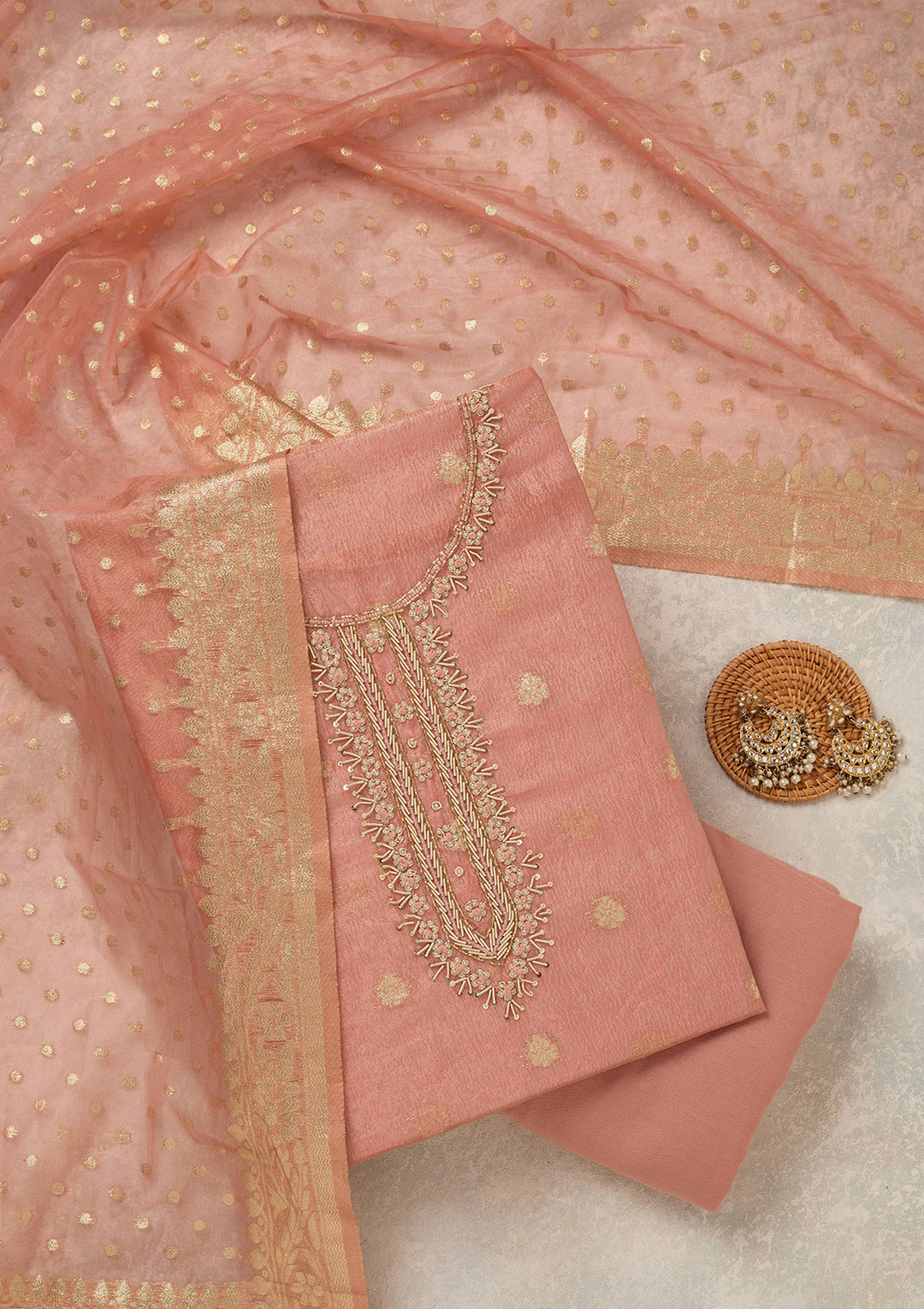 Onion Pink Zariwork Tissue Unstitched Salwar Suit | ₹ 2,994 | |