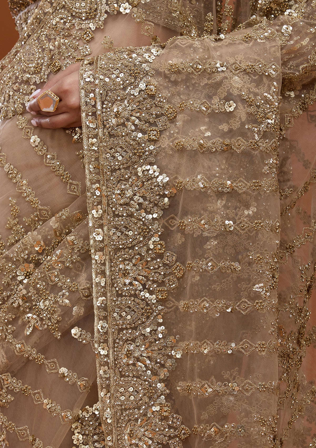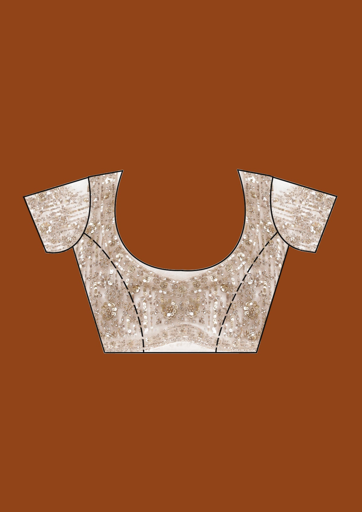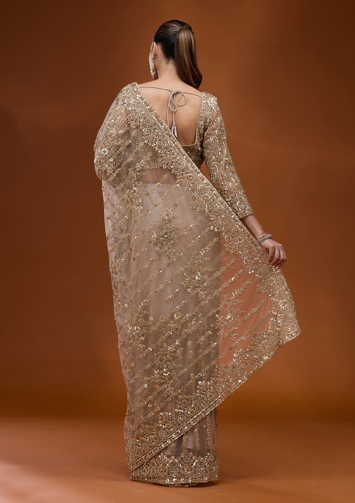 Beige Saree in Net fabric. The Saree is elevated with Cording embroidery. It comes with an Unstitched blouse. Comes with the Koskii promise of premium quality.