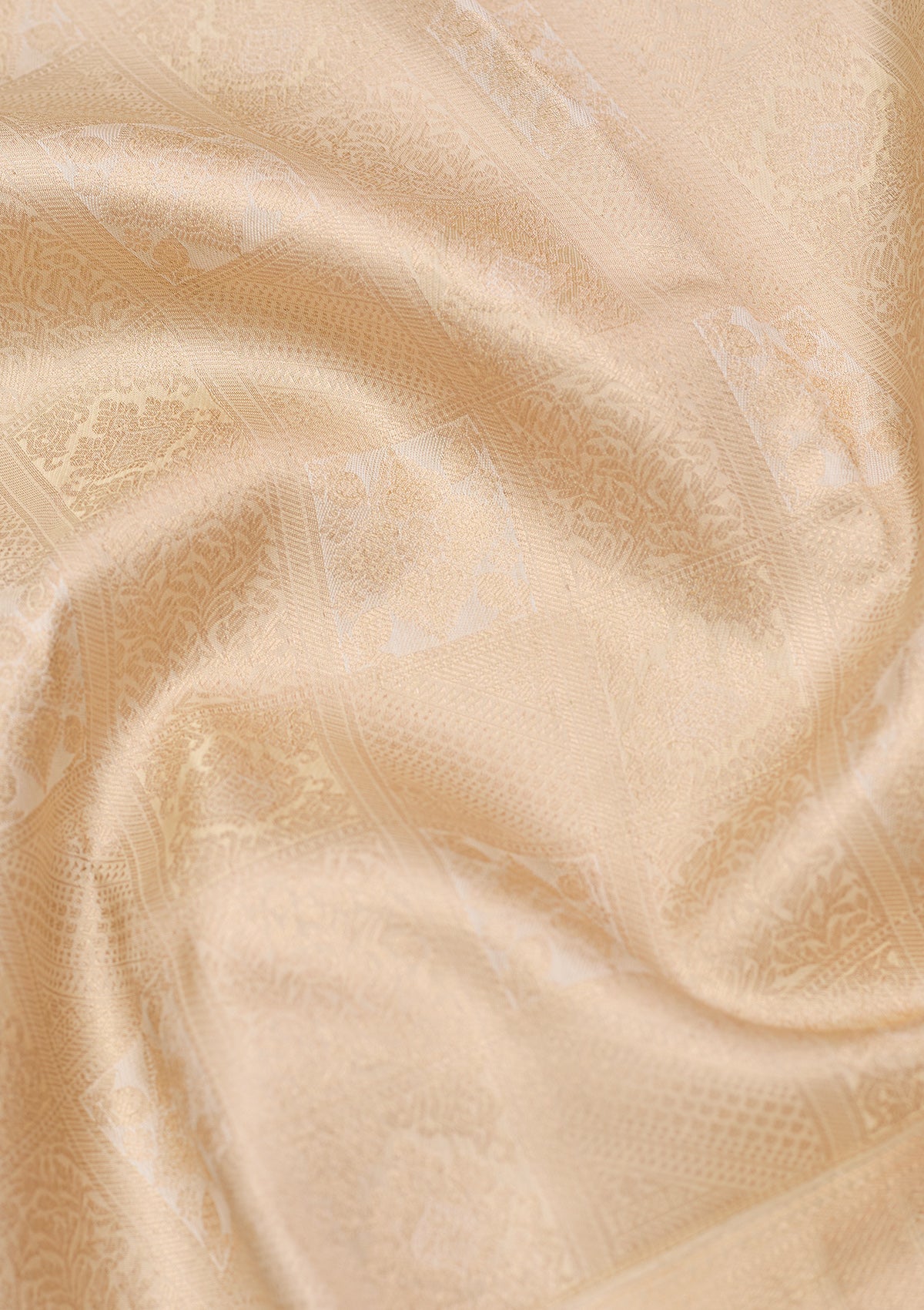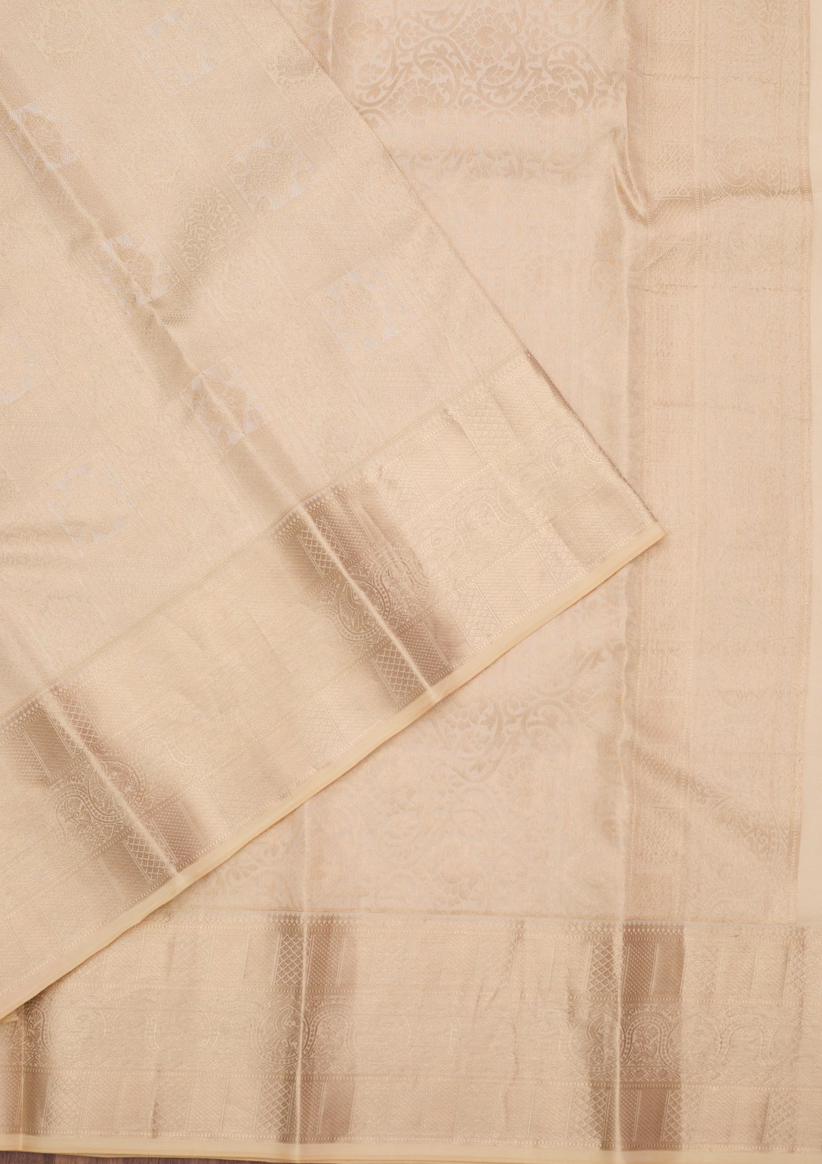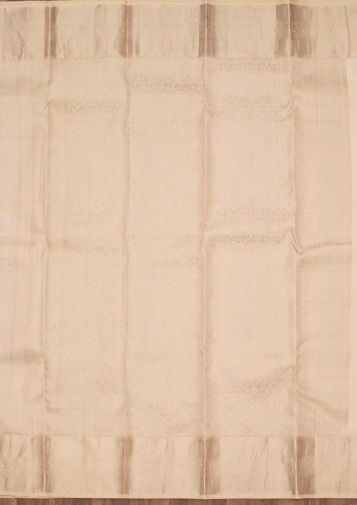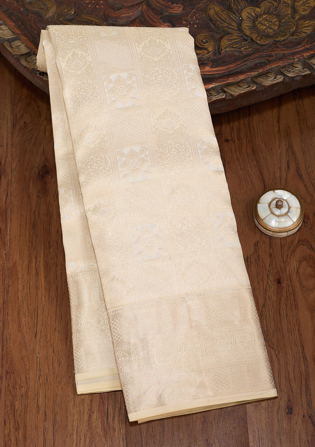 Cream Silk_Saree in Silk fabric. The Silk_Saree is elevated with Zariwork (Silver) embroidery. It comes with an Unstitched blouse. Comes with the Koskii promise of premium quality.