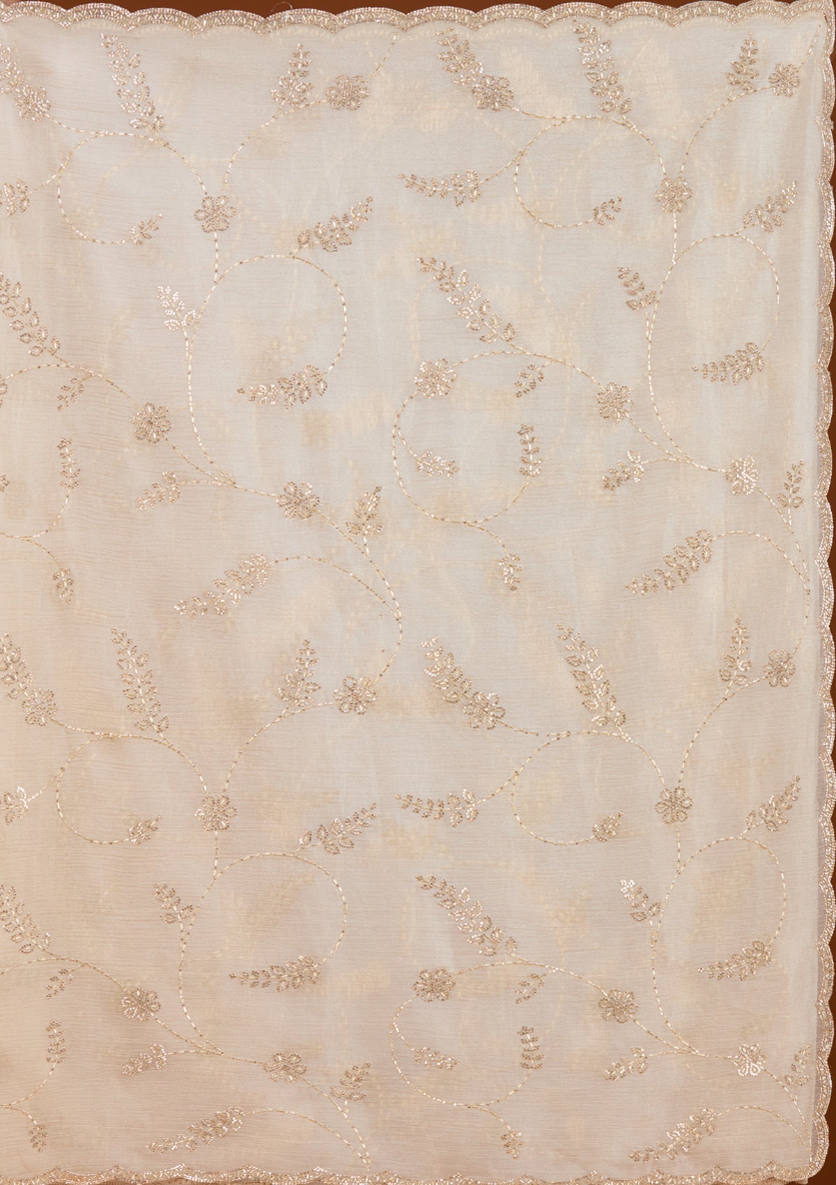 Beige Saree in Chiffon fabric. The Saree is elevated with Stonework (Gold) embroidery. It comes with an Unstitched blouse. Comes with the Koskii promise of premium quality.