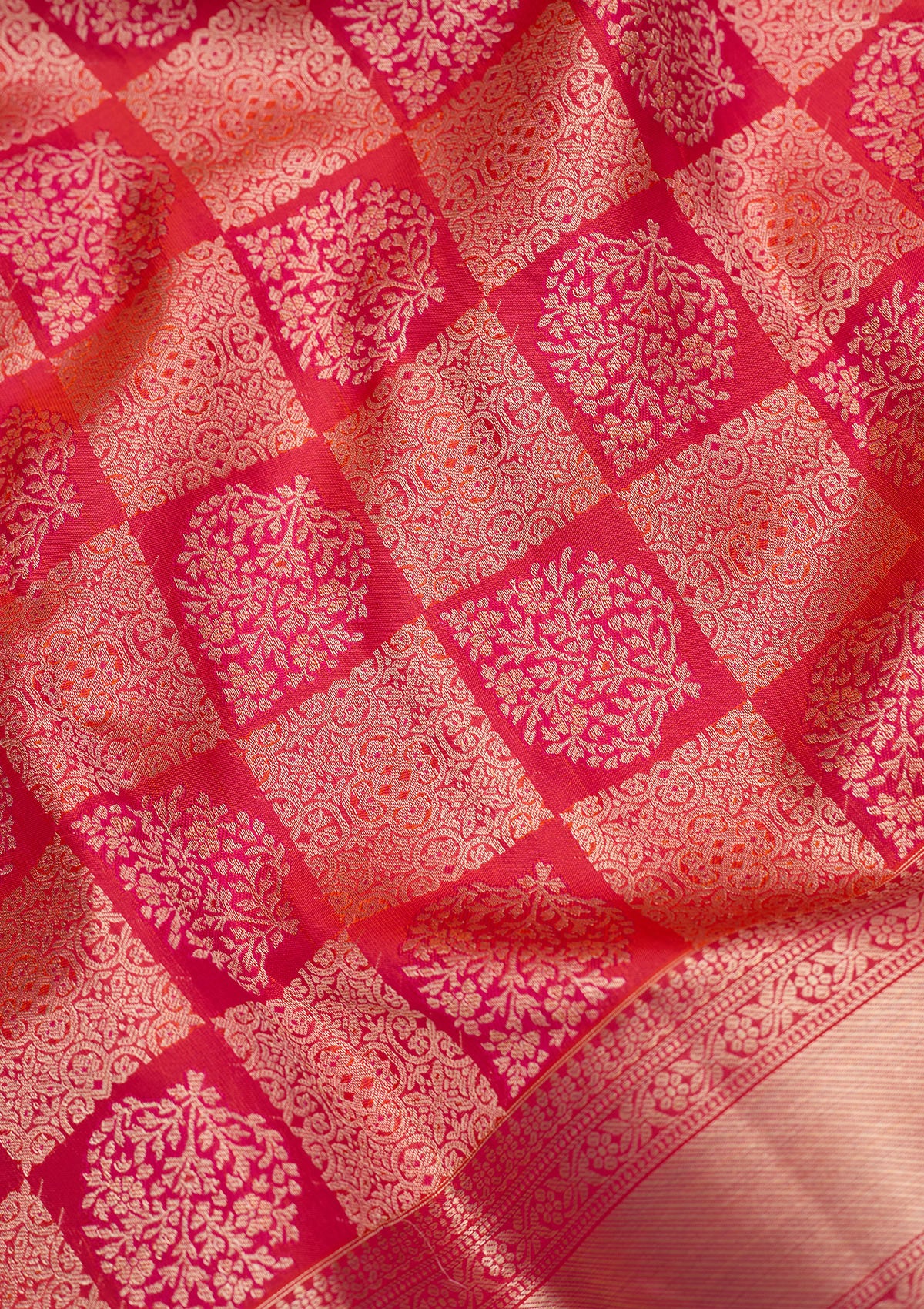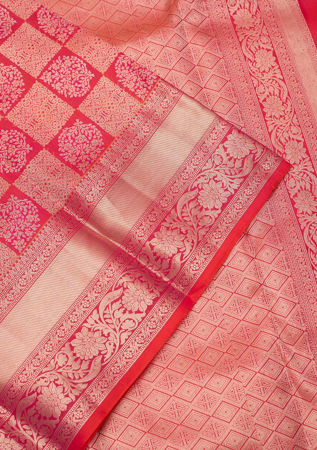Orange Silk_Saree in Silk fabric. The Silk_Saree is elevated with Zariwork (Gold) embroidery. It comes with an Unstitched blouse. Comes with the Koskii promise of premium quality.