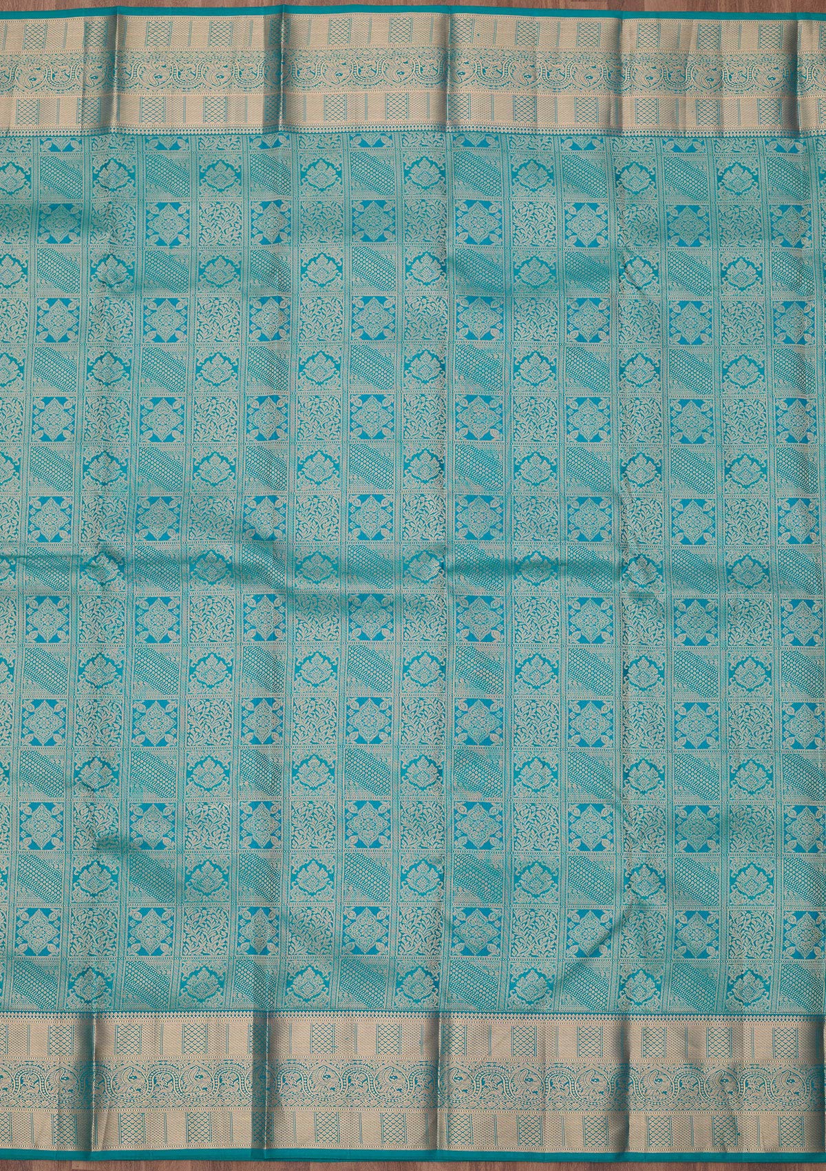 Peacock Blue Zariwork (Gold) Silk Silk_Saree
