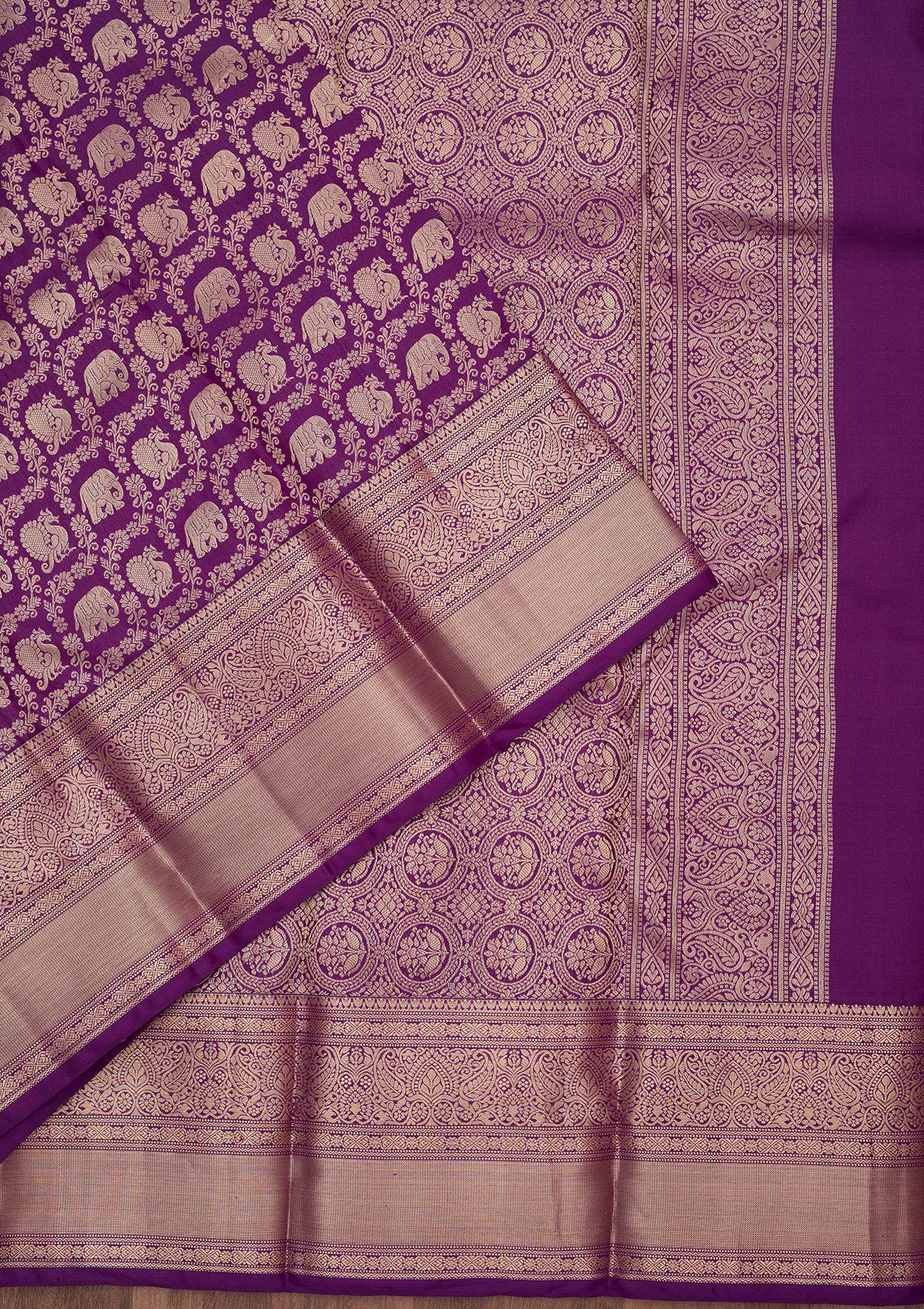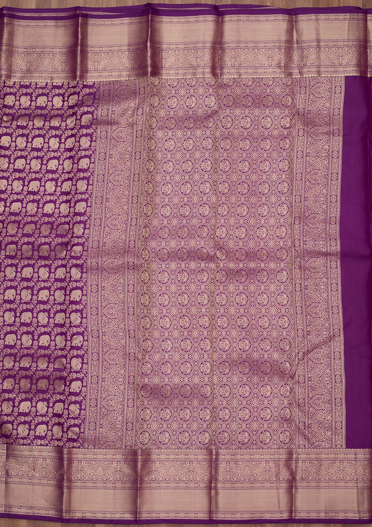 Purple Silk_Saree in Silk fabric. The Silk_Saree is elevated with Zariwork (Silver) embroidery. It comes with an Unstitched blouse. Comes with the Koskii promise of premium quality.