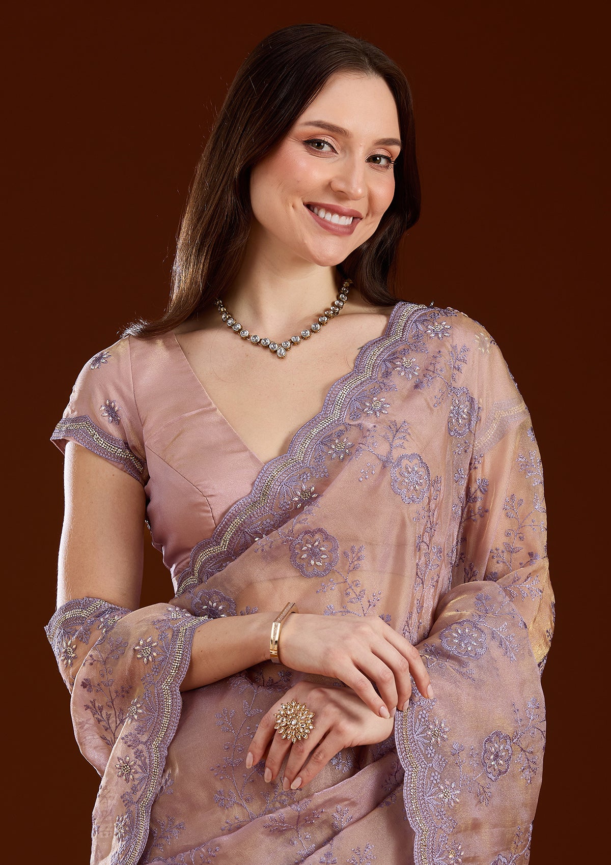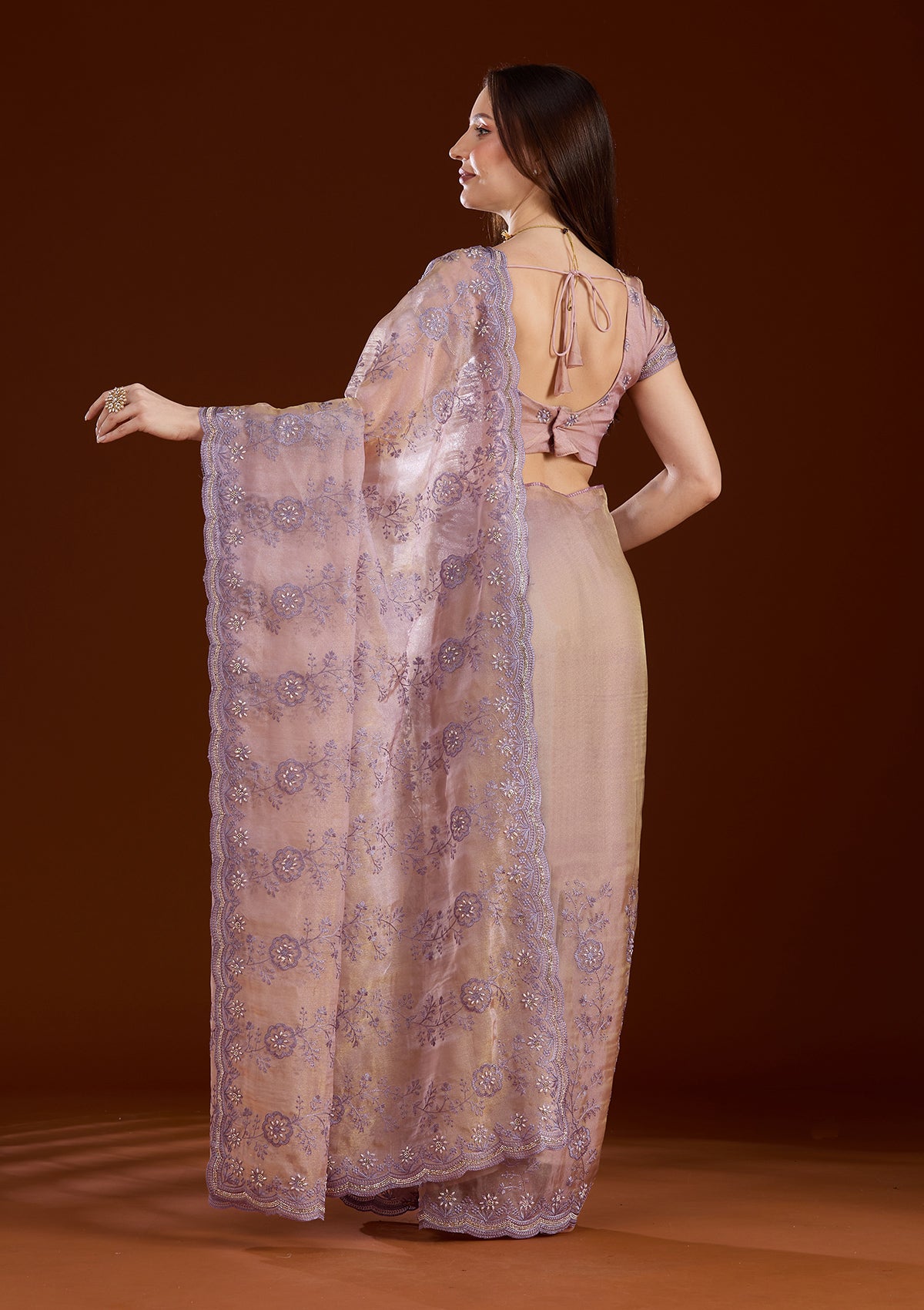 Lavender Saree in Tissue fabric. The Saree is elevated with Threadwork embroidery. It comes with an Unstitched blouse. Comes with the Koskii promise of premium quality.