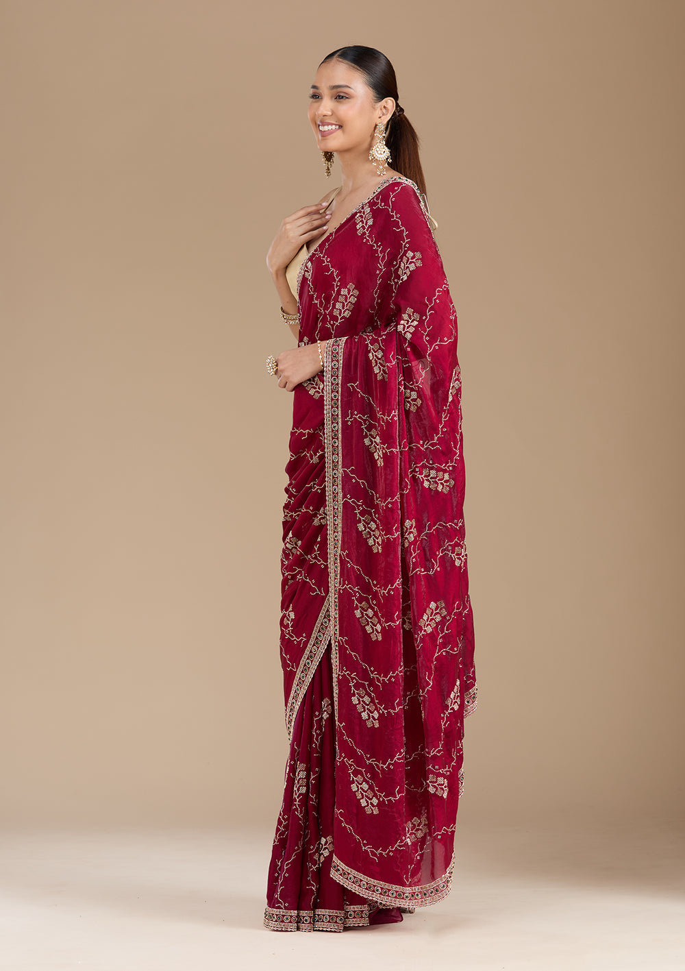 Yellow Zariwork (Gold) Chinon Unstitched Salwar Suit