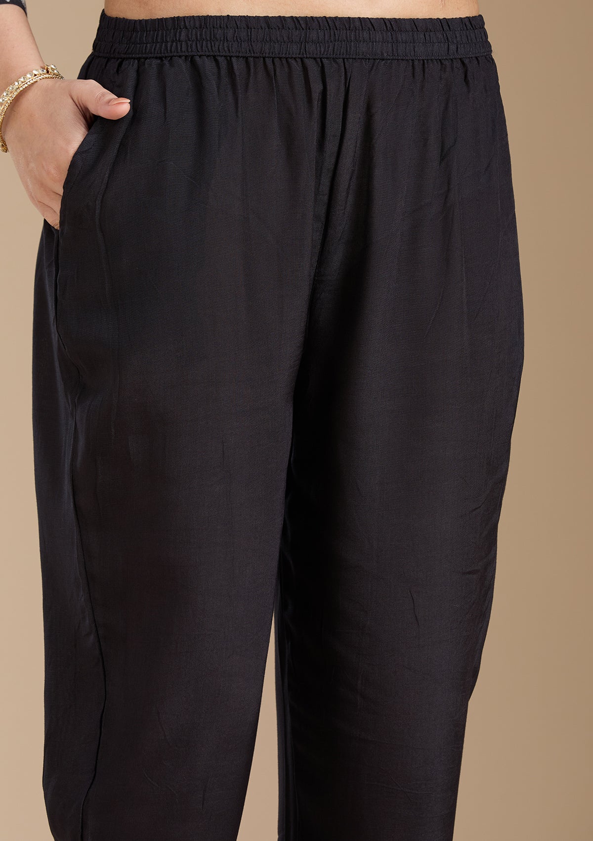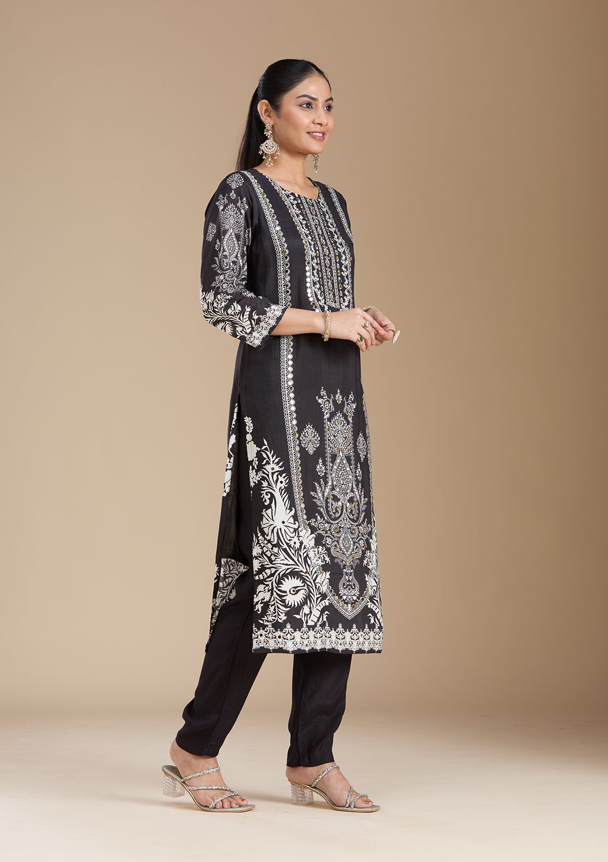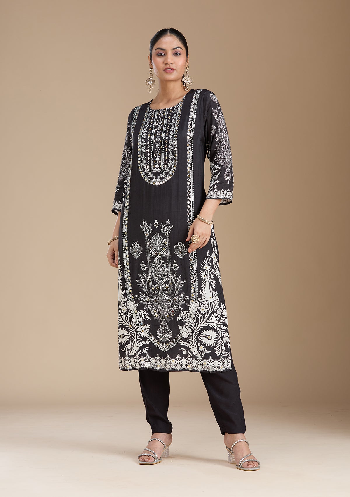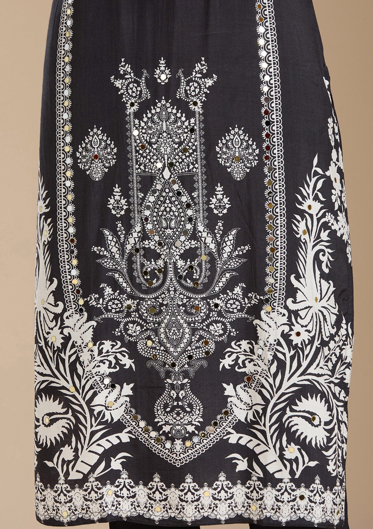 Black Salwar Suit in Crepe fabric. The Salwar Suit is embellished with Printed embroidery. Accompanied with a bottom and dupatta. Comes with the Koskii promise of premium quality.
