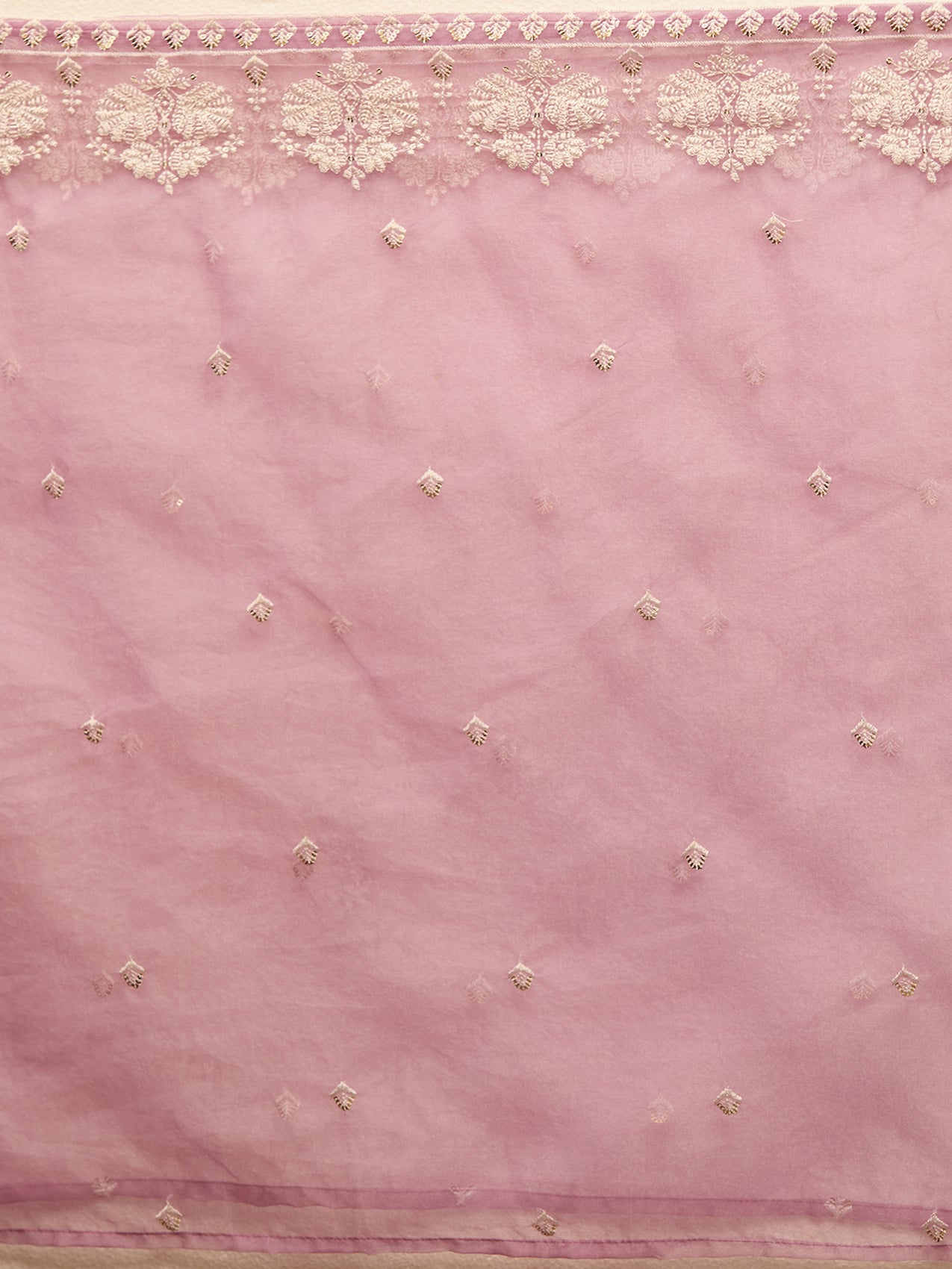 Mauve Salwar Suit in Chanderi fabric. The Salwar Suit is embellished with Threadwork embroidery. Accompanied with a bottom and dupatta. Comes with the Koskii promise of premium quality.