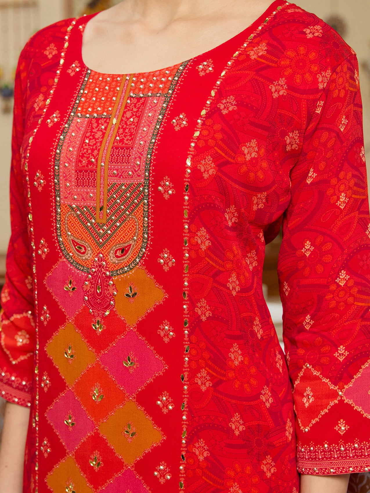Red Salwar Suit in Tissue fabric. The Salwar Suit is embellished with Stonework embroidery. Accompanied with a bottom and dupatta. Comes with the Koskii promise of premium quality.