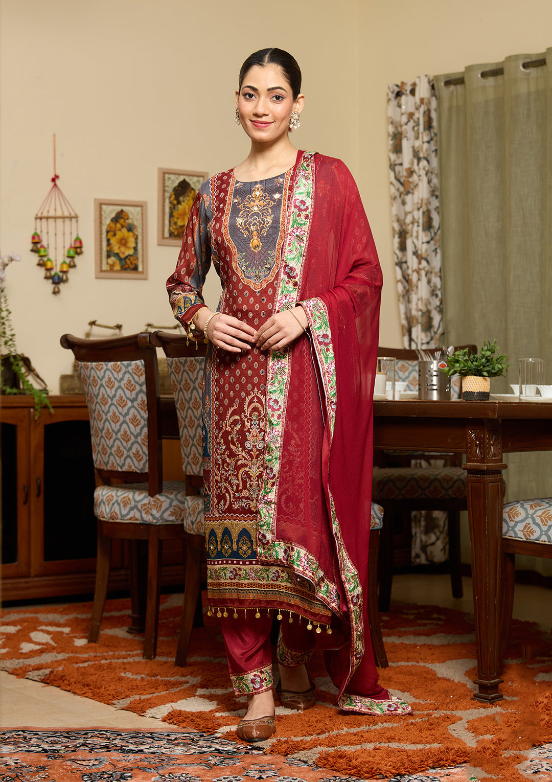 | Maroon Sequins Raw Silk Readymade Salwar Suit | ₹ 2,863 | |