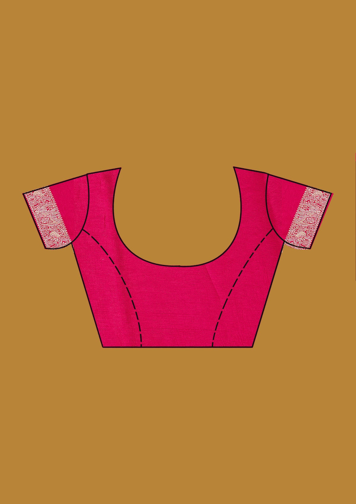 Rani Pink Silk_Saree in Silk fabric. The Silk_Saree is elevated with Zariwork (Gold) embroidery. It comes with an Unstitched blouse. Comes with the Koskii promise of premium quality.