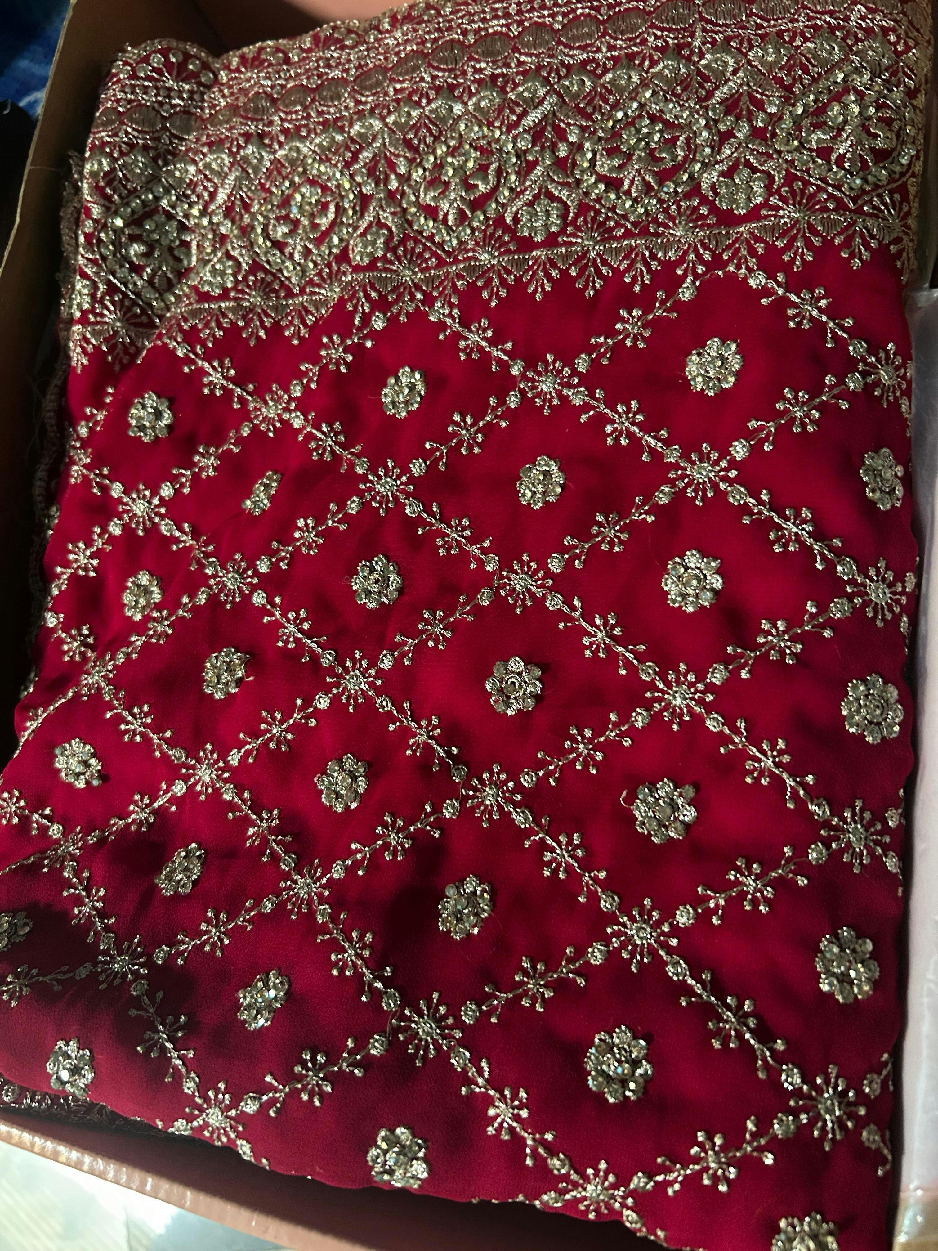 Rani Pink Saree in Georgette fabric. The Saree is elevated with Zariwork (Gold) embroidery. It comes with an Unstitched blouse. Comes with the Koskii promise of premium quality.