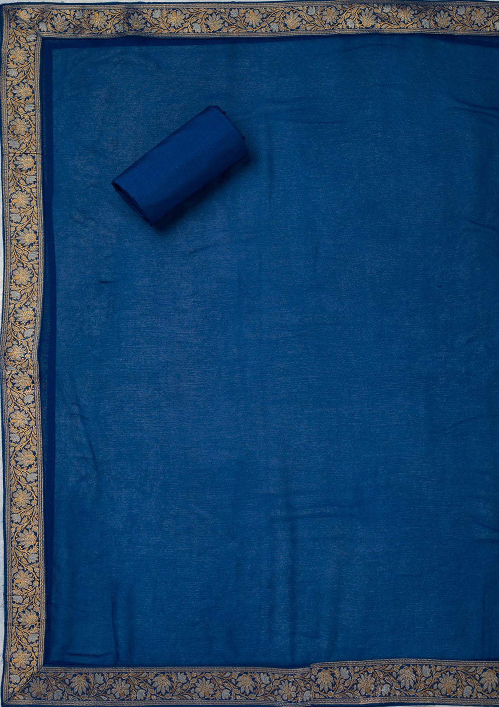 Navy Blue Unstitched Salwar Suit In Banarasi Fabric The Salwar Suit Is Embellished With Zariwork Embroidery Accompanied With An Unstitched Bottom And Dupatta Comes With The Koskii Promise Of Premium Quality.