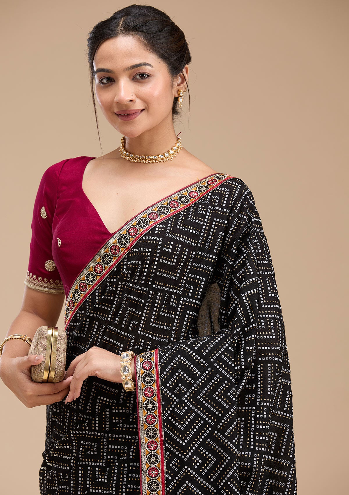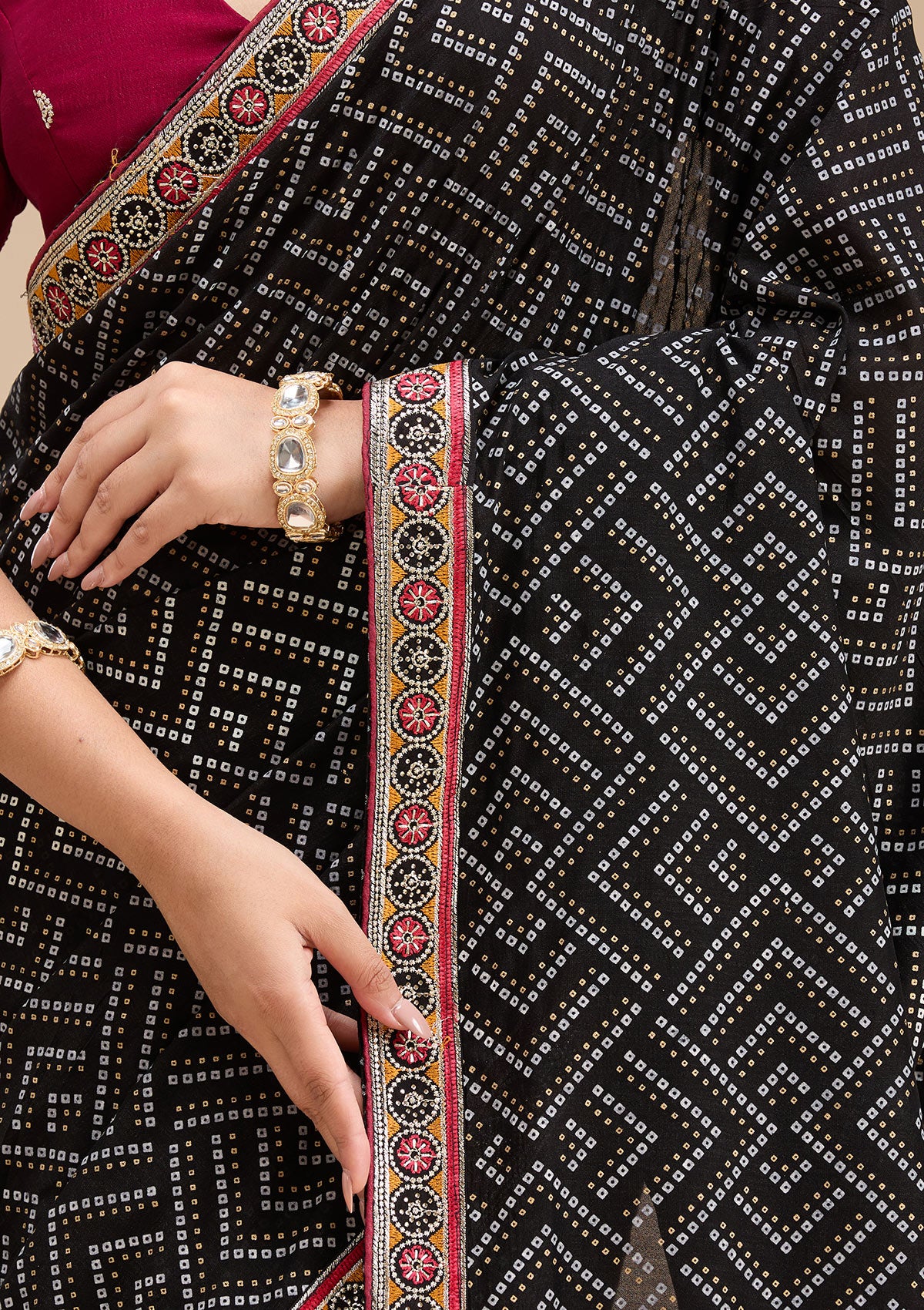 Black Bandhani Soft Raw Silk Saree