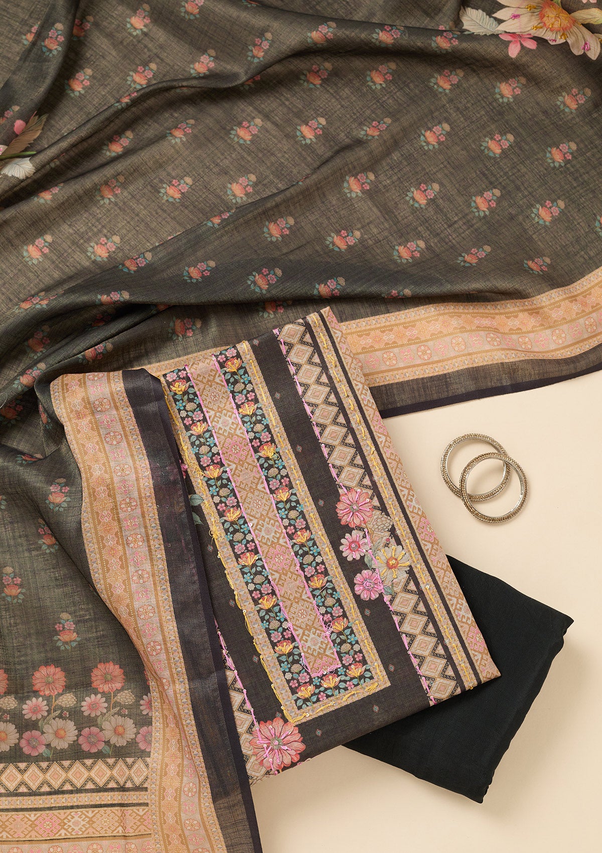 Black Salwar Suit in Linen fabric The Salwar Suit is embellished with Threadwork embroidery Accompanied with a bottom and dupatta Comes with the Koskii promise of premium quality.