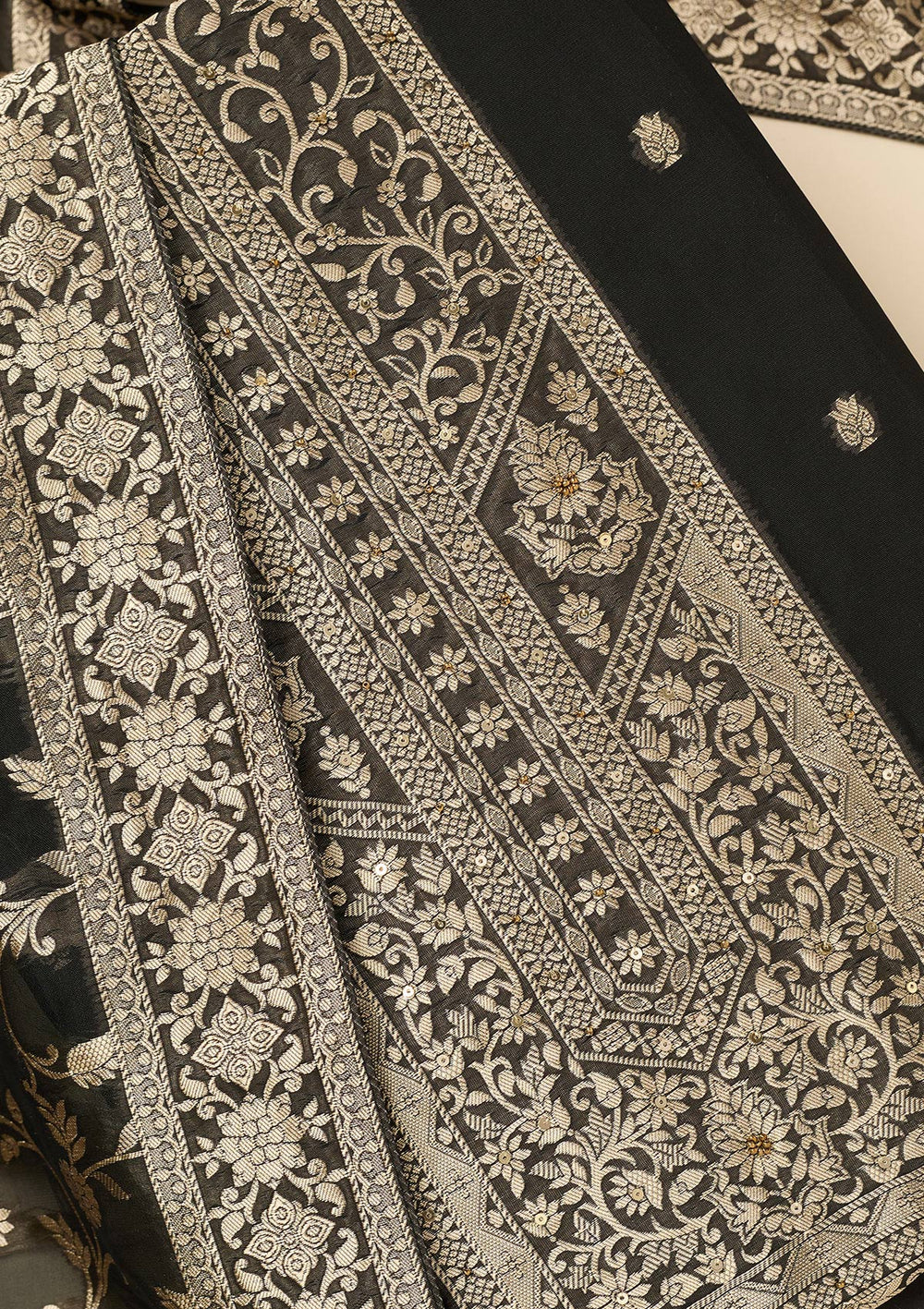| Black Zariwork (Gold) Banarasi Unstitched Salwar Suit | ₹ 2,392 | |