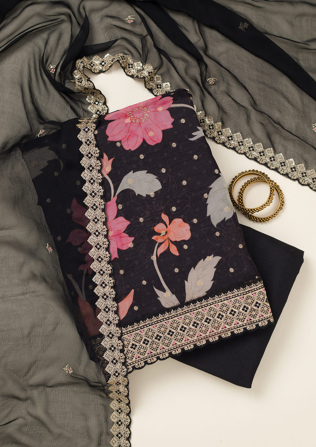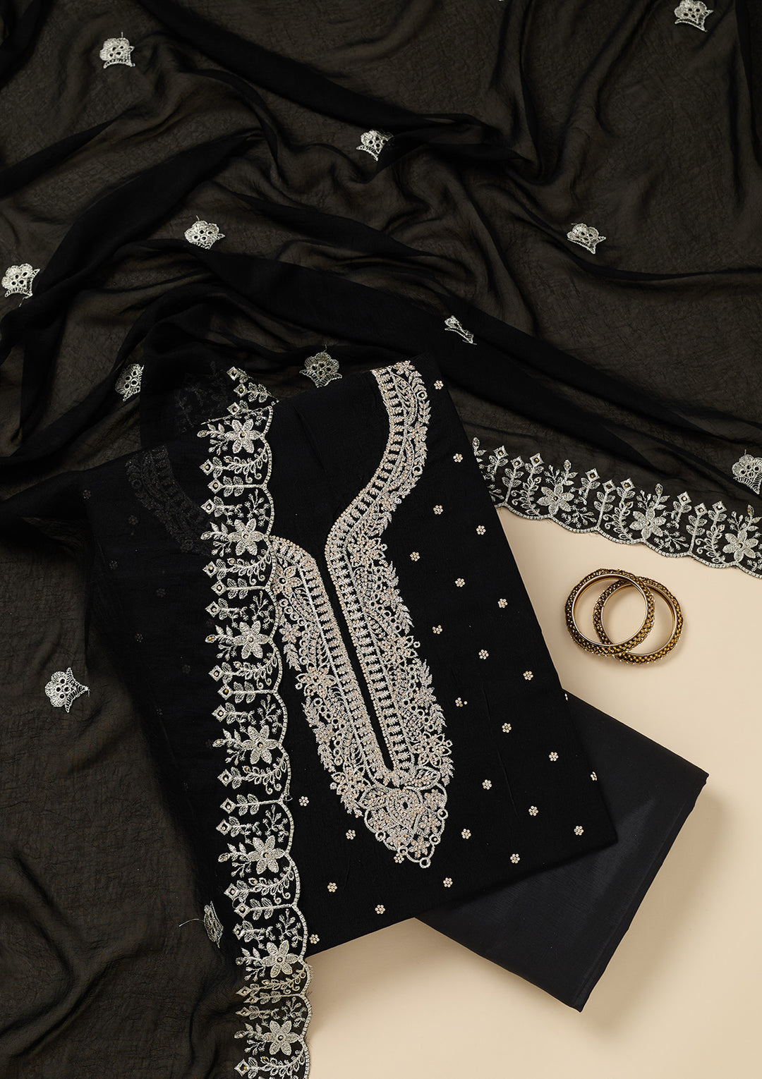 | Black Threadwork Chanderi Unstitched Salwar Suit | ₹ 2,392 | |