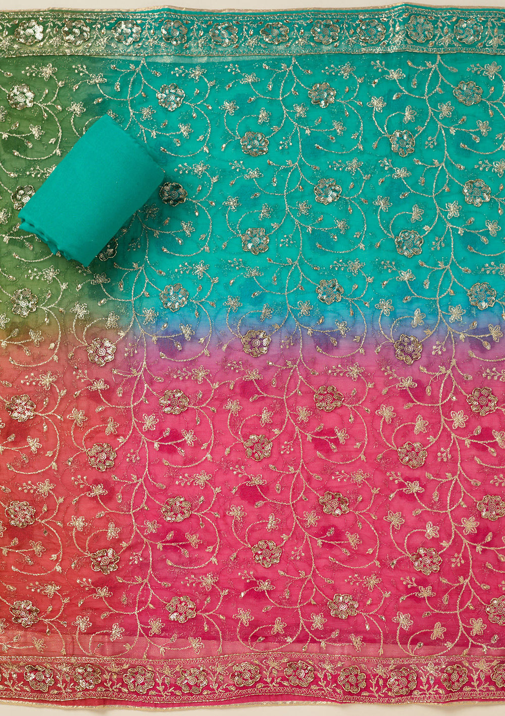 Turquoise Blue Zariwork Georgette Unstitched Salwar Suit | ₹ 6,392 | |