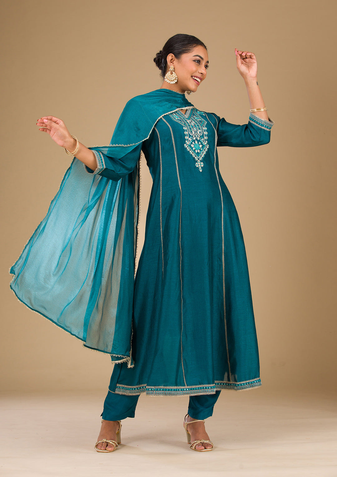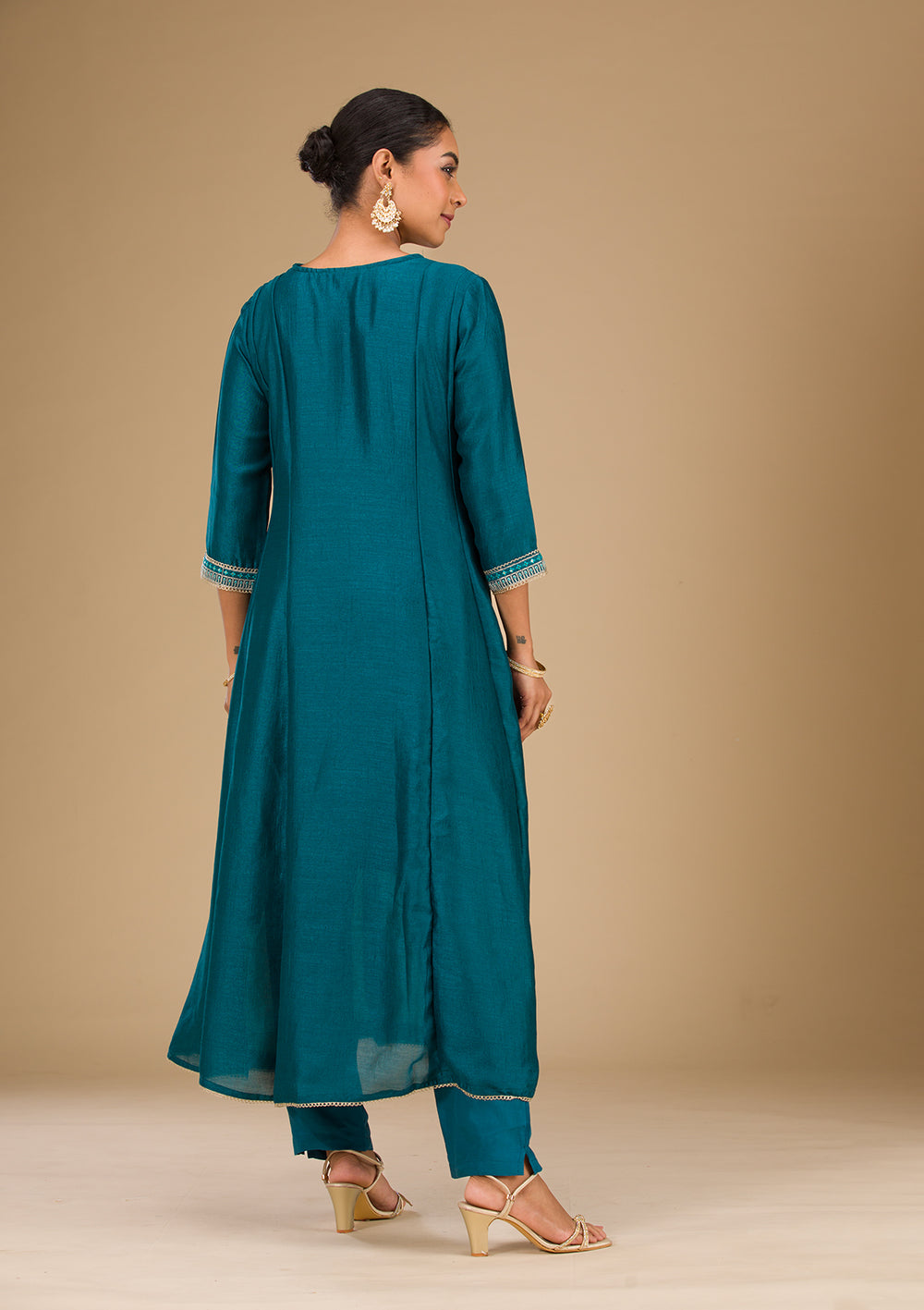 - A rich, jewel-toned peacock blue kurta set adds a touch of glamour to your ethnic wardrobe. It’s ideal for evening events or festive celebrations.