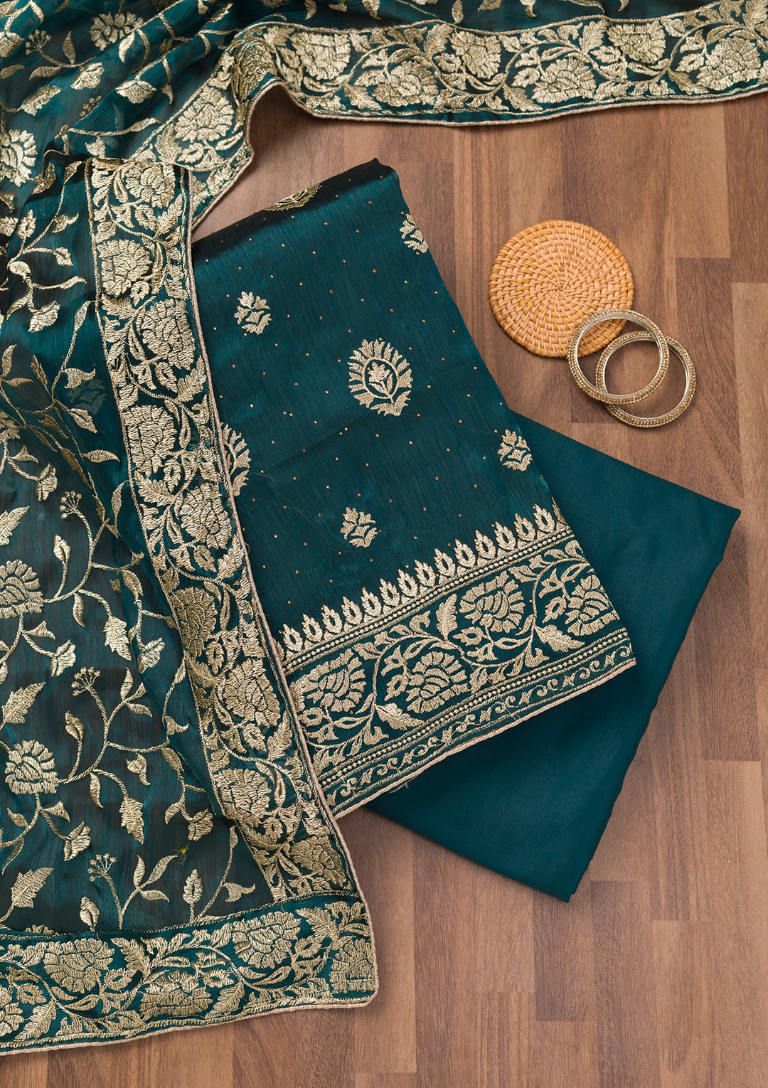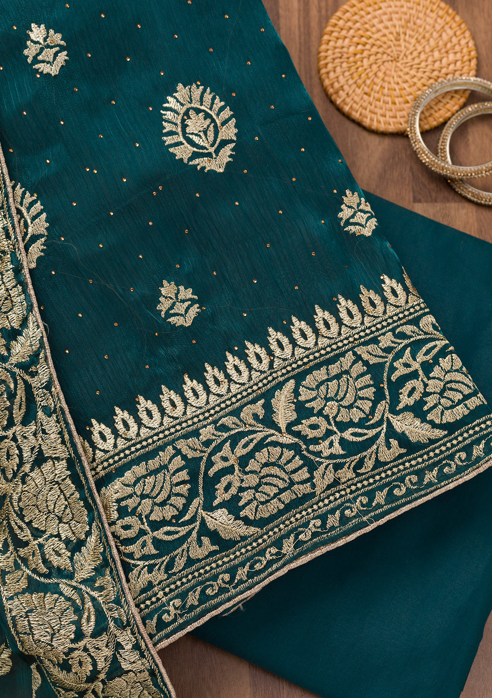 | Peacock Blue Zariwork Raw Silk Unstitched Salwar Suit | ₹ 2,392 | |