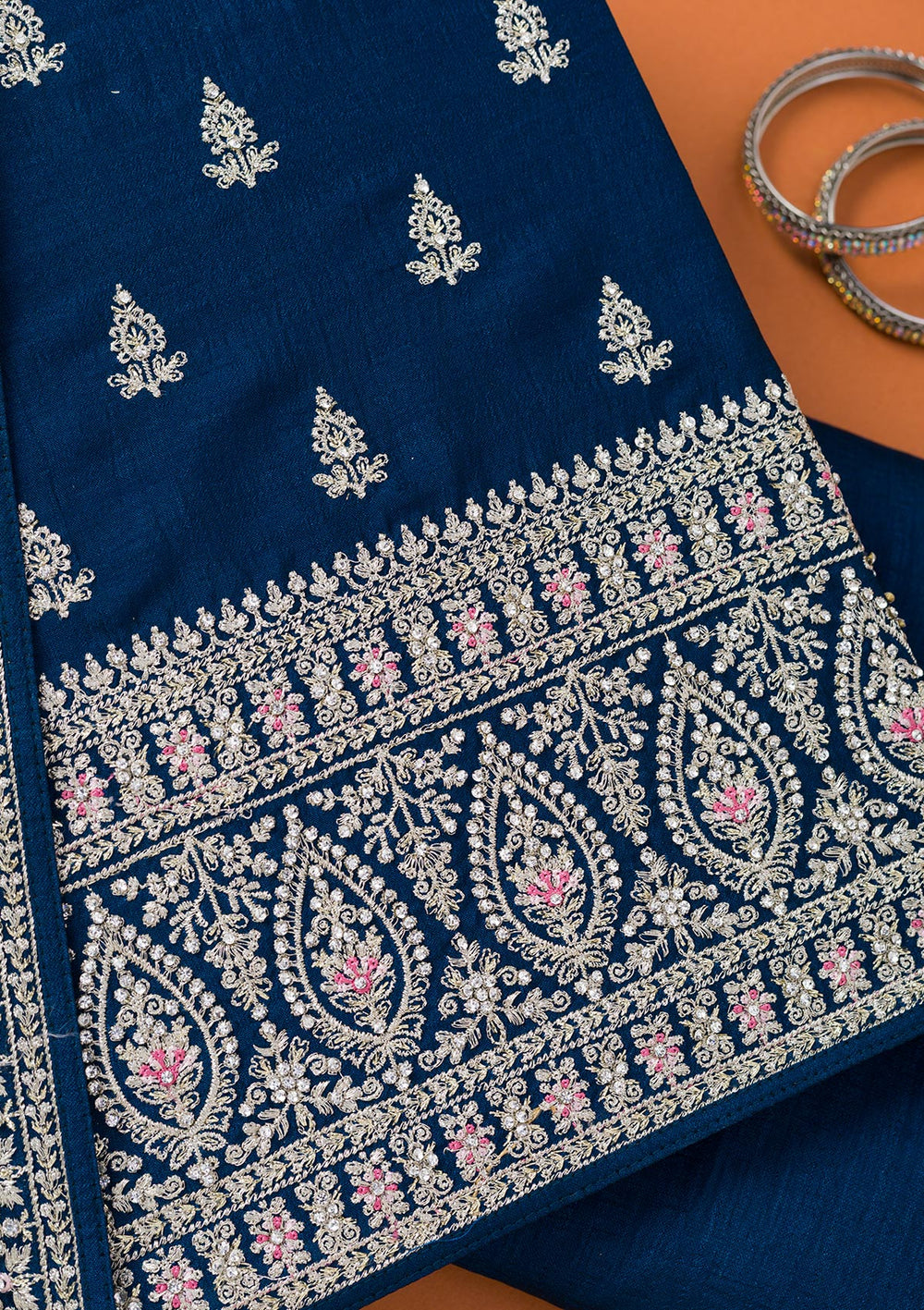 | Turquoise Blue Cording Soft Raw Silk Unstitched Salwar Suit | ₹ 3,192 | |