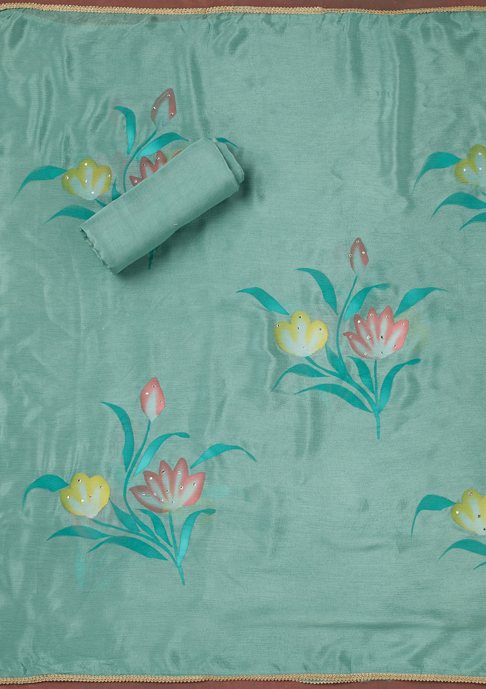 | Blue Printed Chanderi Unstitched Salwar Suit | ₹ 2,694 | |