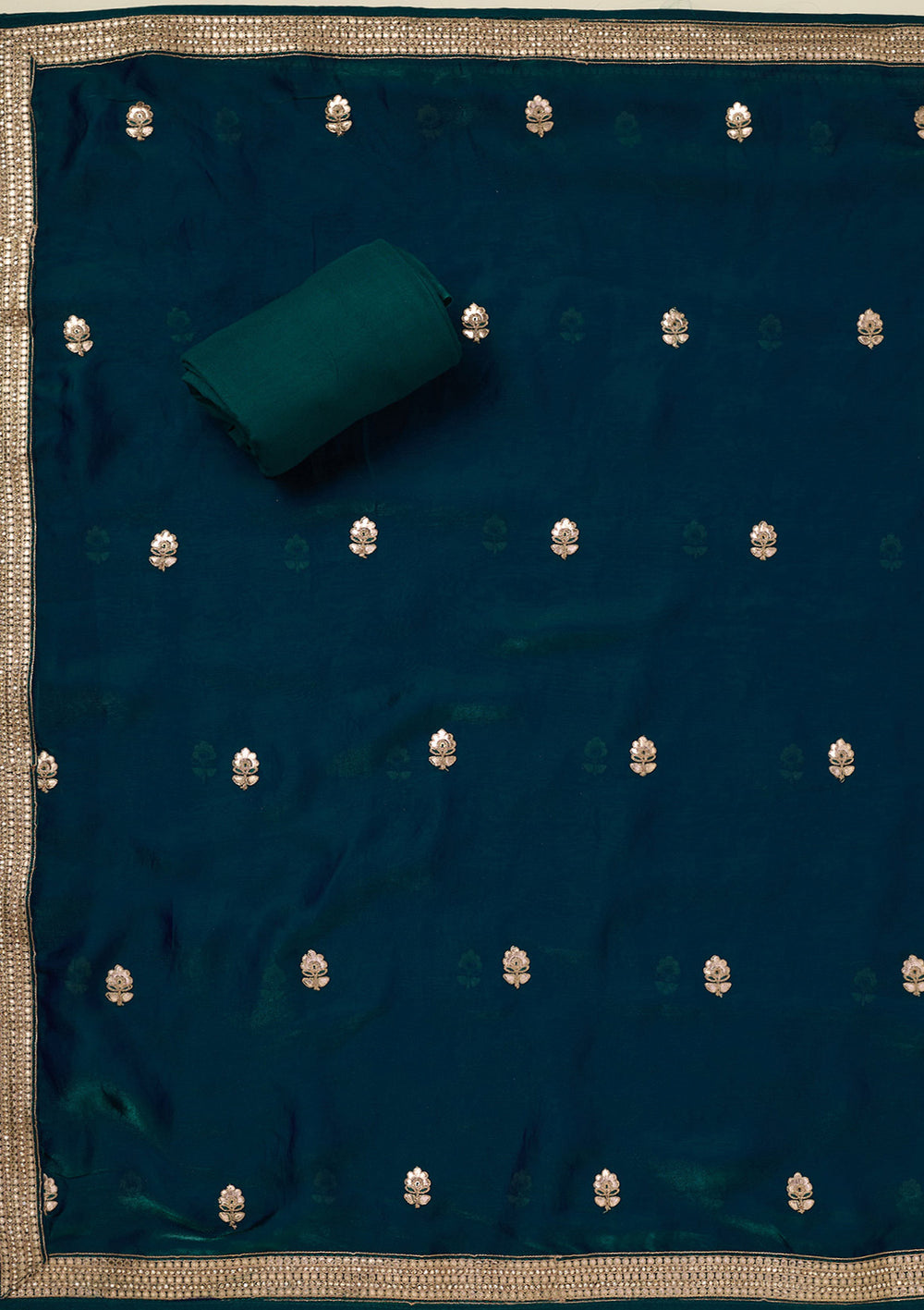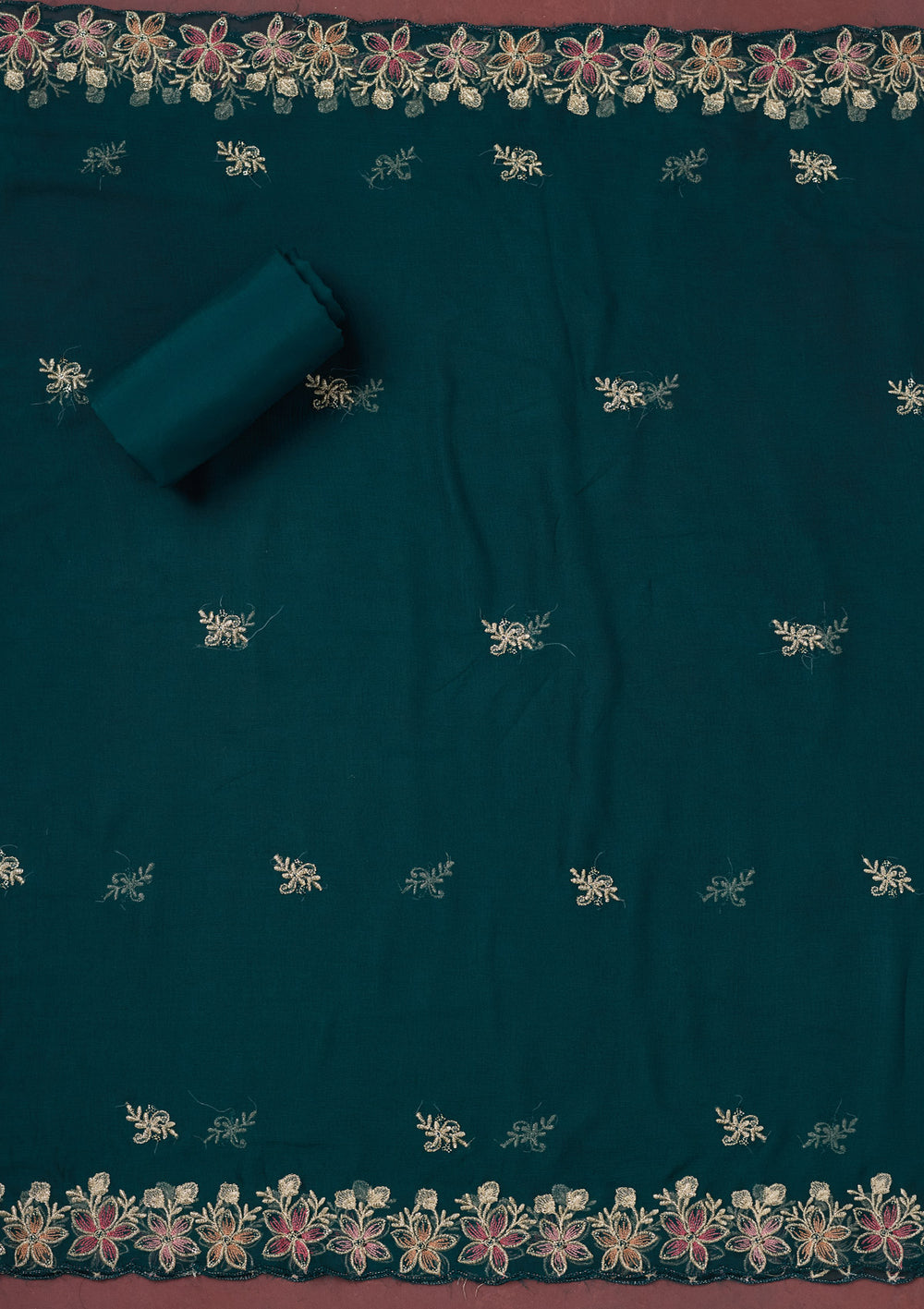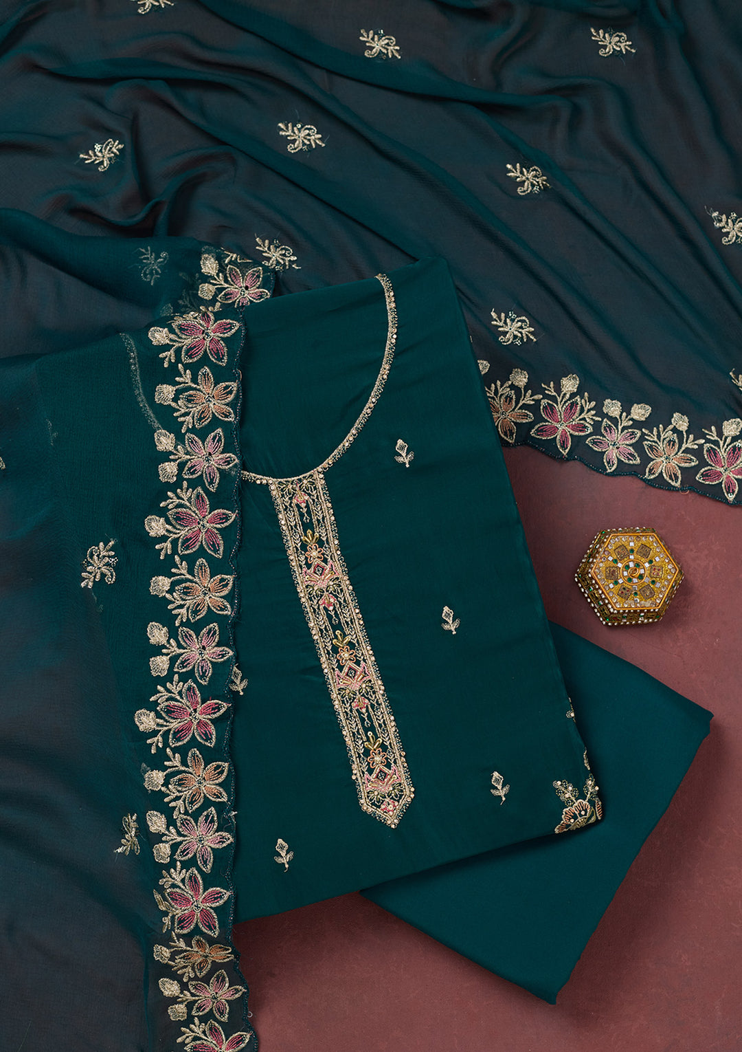| Peacock Blue Zariwork (Silver) Semi Crepe Unstitched Salwar Suit | ₹ 3,992 | |