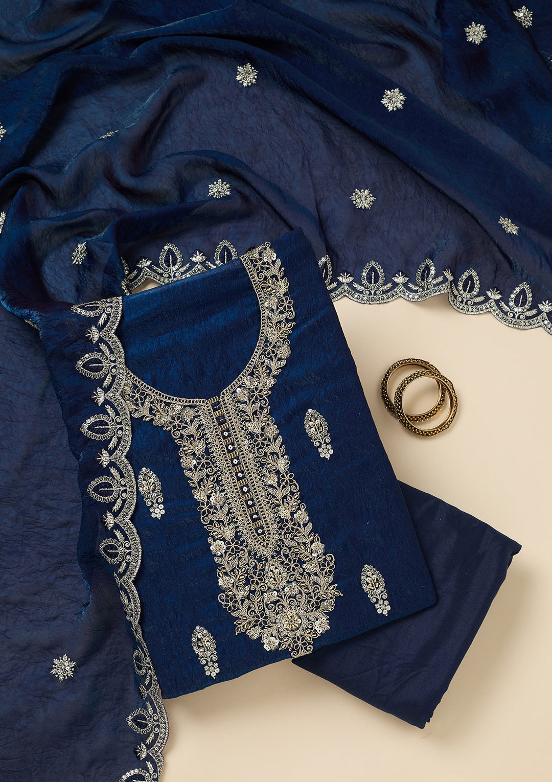 - An unstitched royal blue kurta set with dupatta gives you the choice to get it tailored as you desire, making sure it fits you exactly how you want it to.