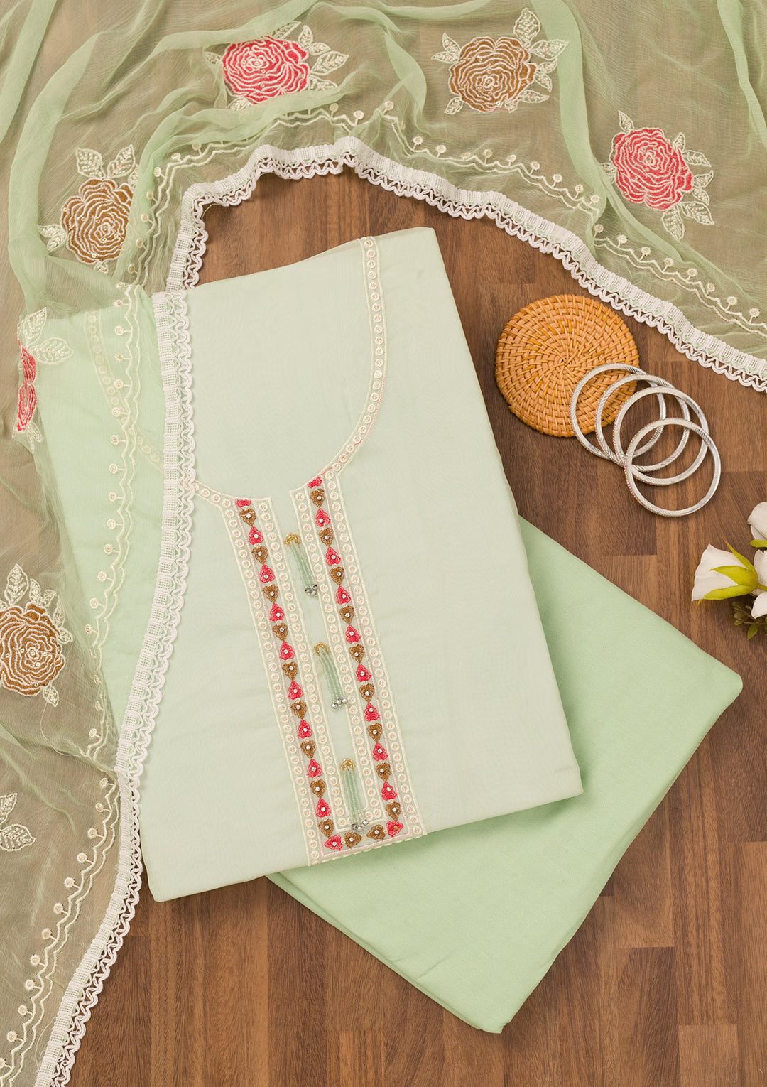 | Sky Blue Pearlwork Soft Raw Silk Unstitched Salwar Suit | ₹ 3,992 | |