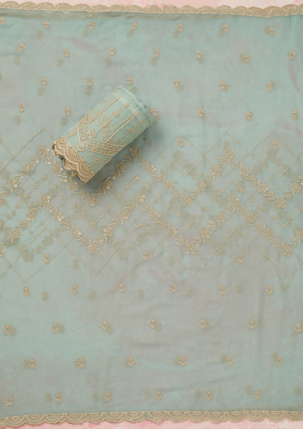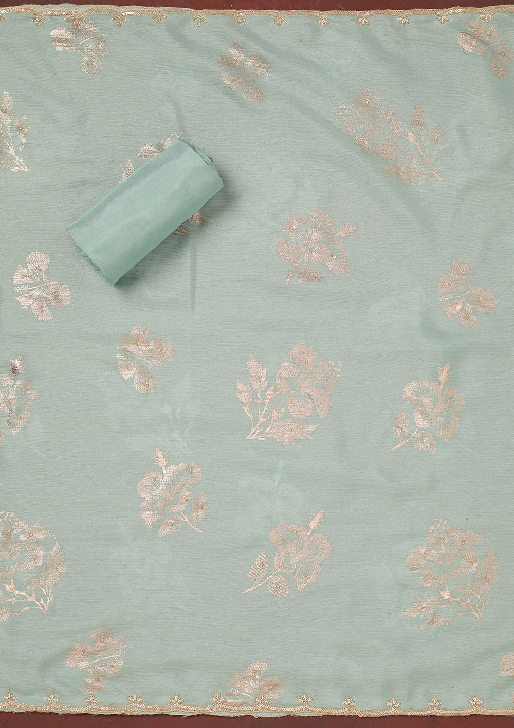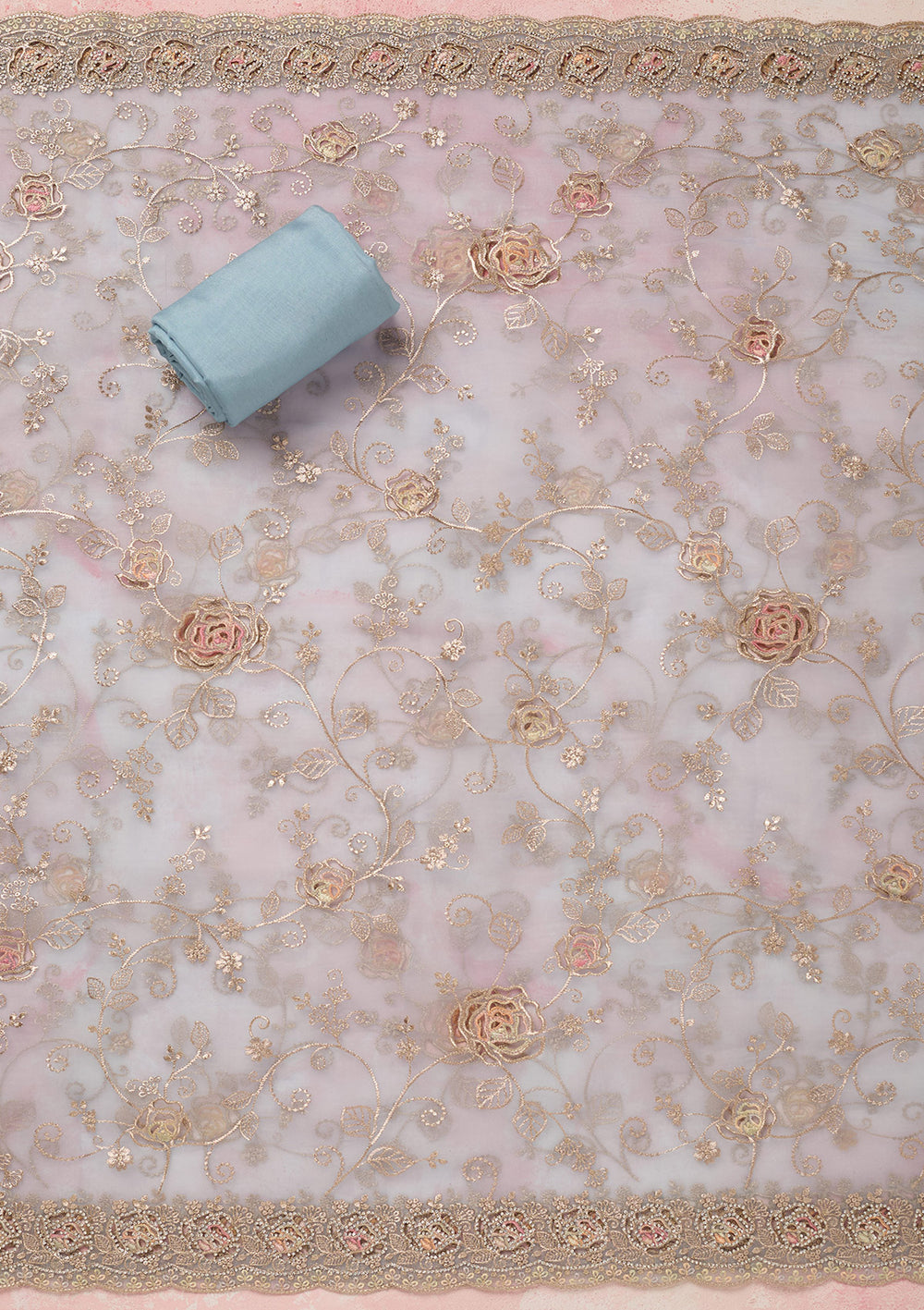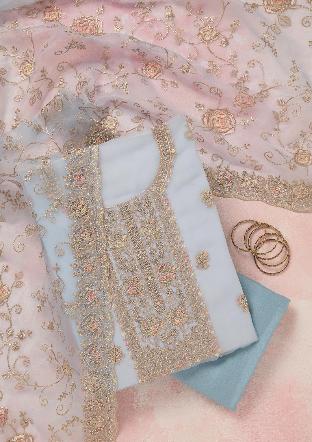 | Sky Blue Zariwork (Gold) Organza Unstitched Salwar Suit | ₹ 5,192 | |