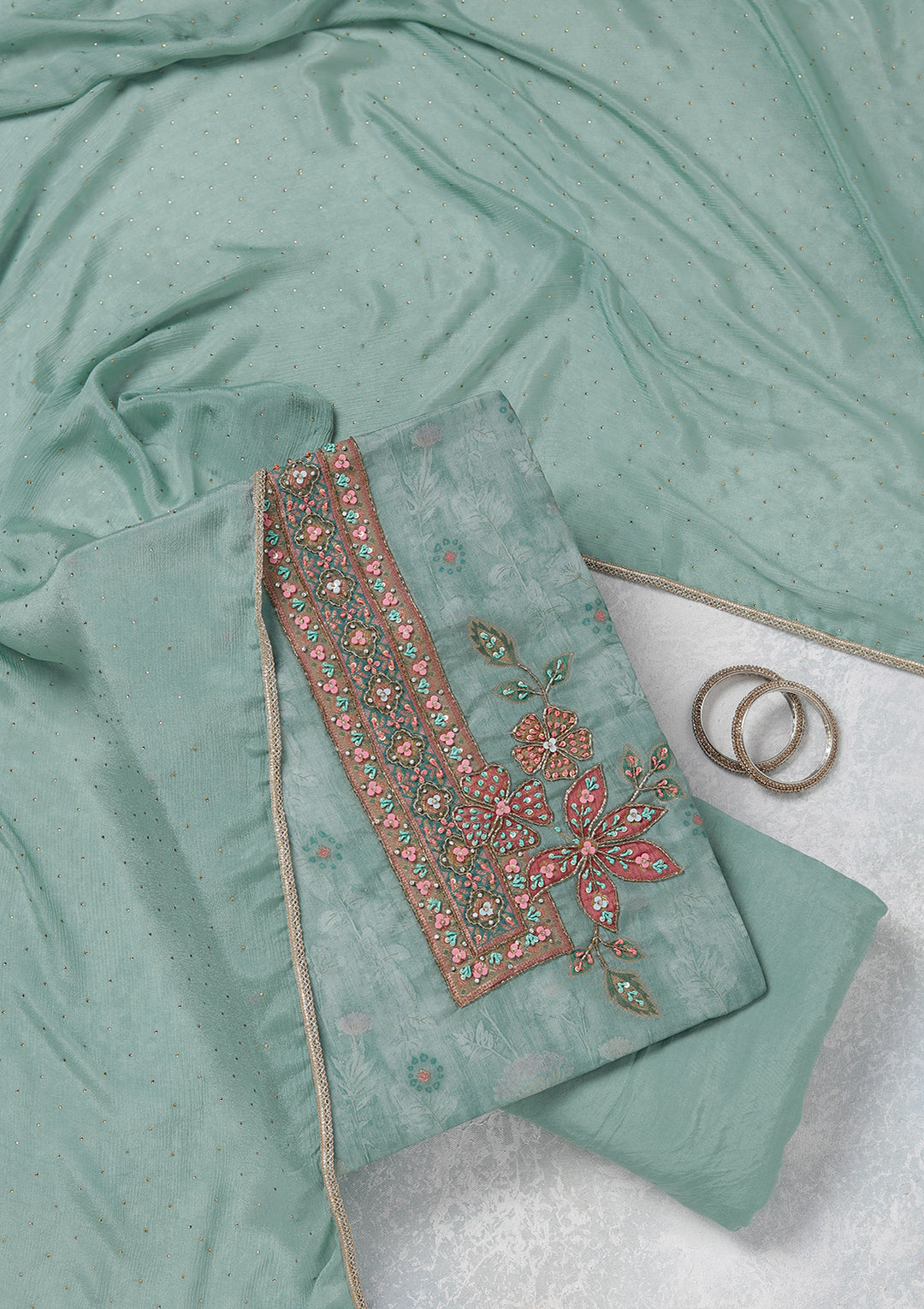 | Sky Blue Cutdana Chinon Unstitched Salwar Suit | ₹ 5,592 | |