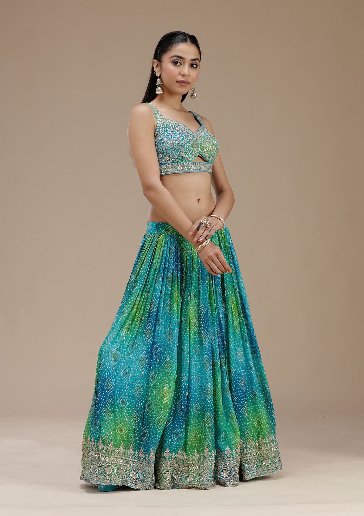 Sky Blue Readymade Lehenga in Crepe fabric The Lehenga is embellished with Sequins embroidery Accompanied with an Readymade blouse and dupatta Comes with the Koskii promise of premium quality.