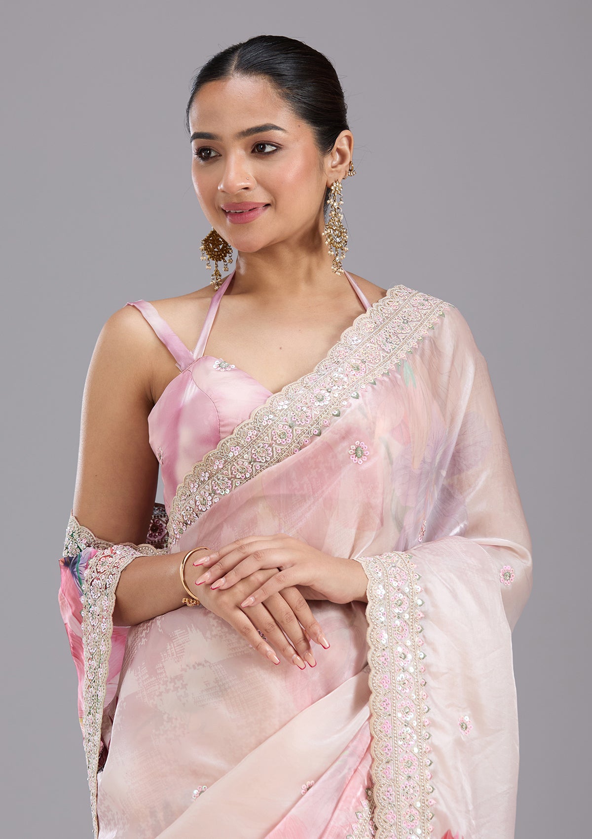Baby Pink Saree in Tissue fabric The Saree is elevated with Sequins embroidery It comes with an Unstitched blouse Comes with the Koskii promise of premium quality.