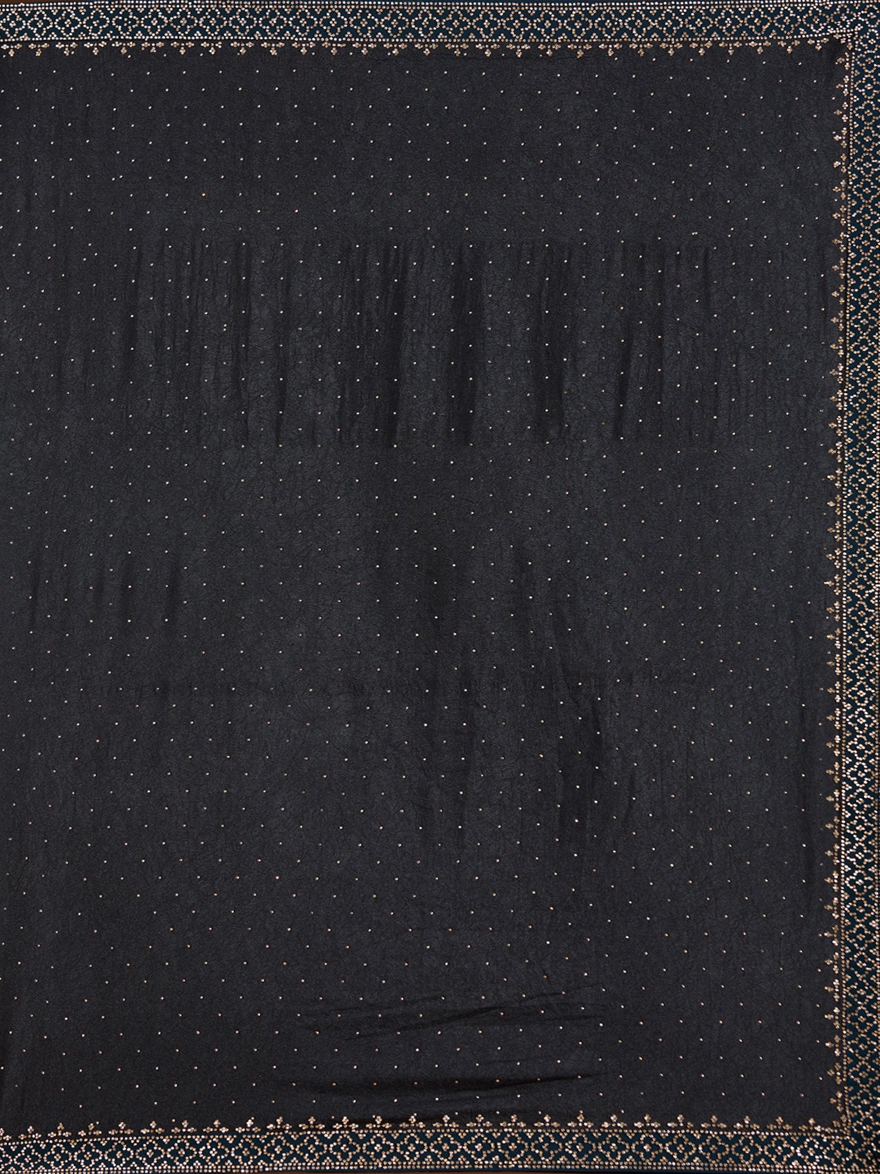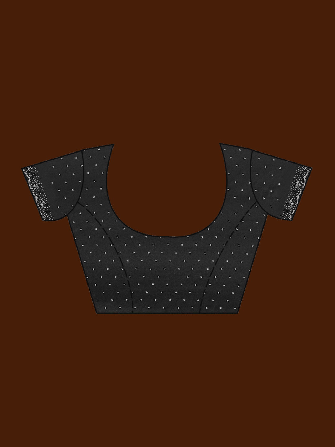 Black Saree in Velvet fabric The Saree is elevated with Stonework (Silver) embroidery It comes with an Unstitched blouse Comes with the Koskii promise of premium quality.