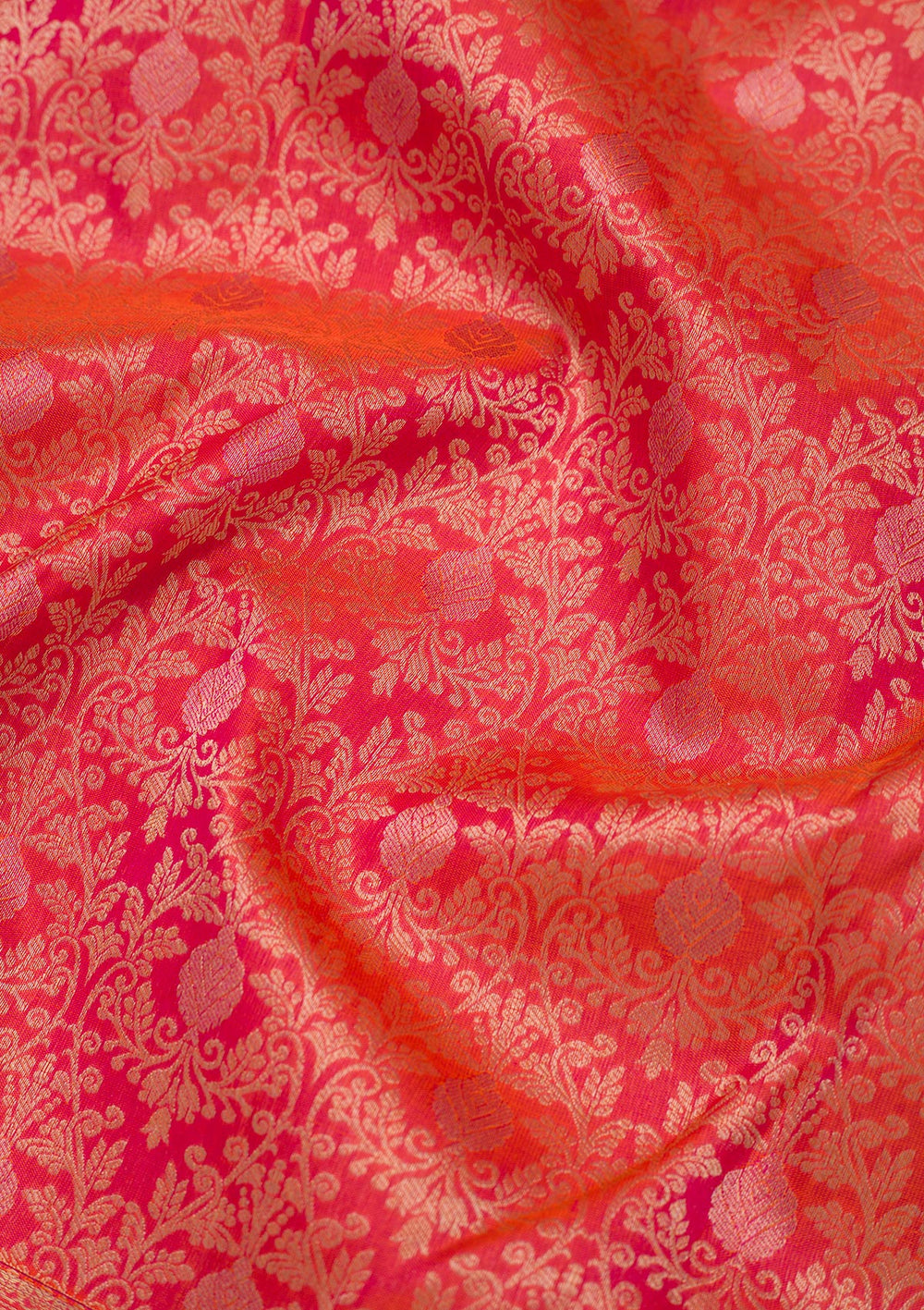 Orange Saree in Pure Silk fabric. The Saree is elevated with Zariwork embroidery. It comes with an Unstitched blouse. Comes with the Indian Silk Mark certification.