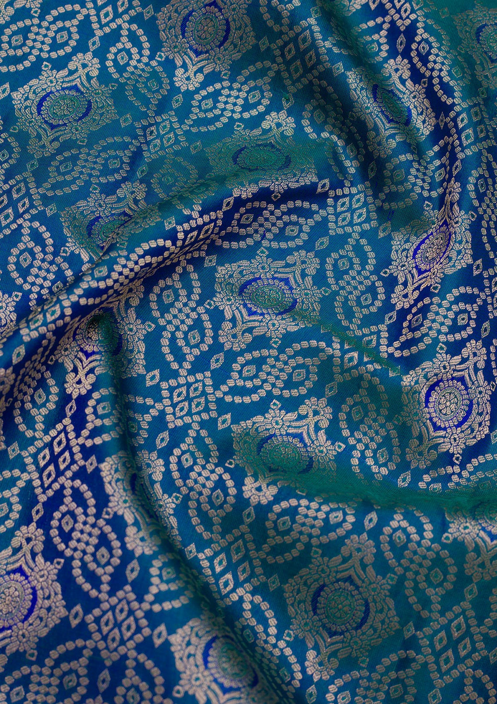 Peacock Blue Saree in Pure Silk fabric. The Saree is elevated with Zariwork embroidery. It comes with an Unstitched blouse. Comes with the Indian Silk Mark certification.