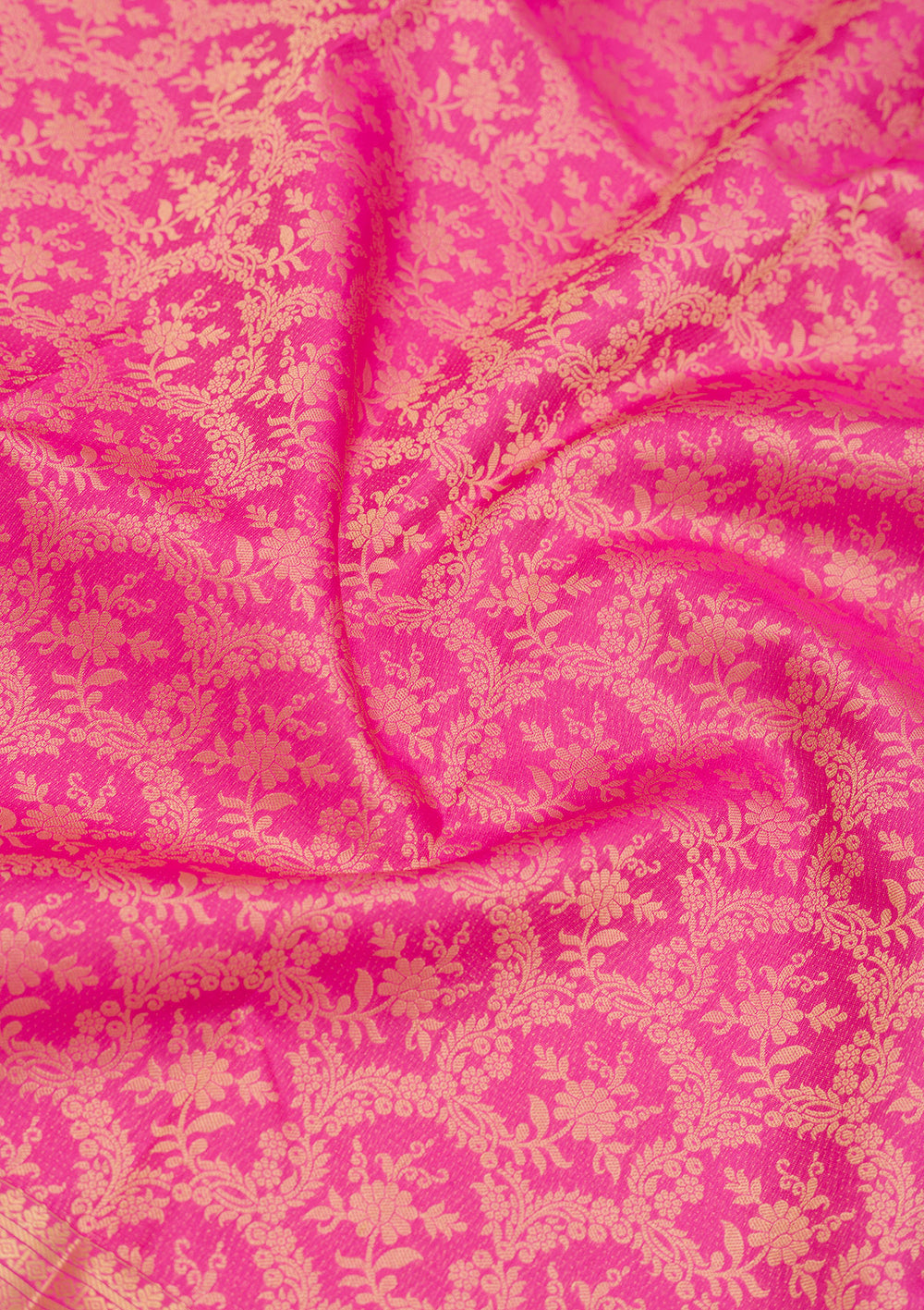 Pink Saree in Pure Silk fabric. The Saree is elevated with Zariwork embroidery. It comes with an Unstitched blouse. Comes with the Indian Silk Mark certification.