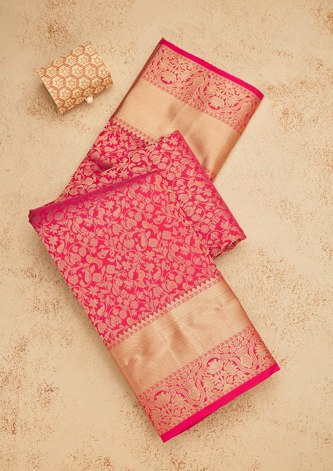 | Rani Pink Zariwork Pure Silk Saree | ₹ 18,893 | |