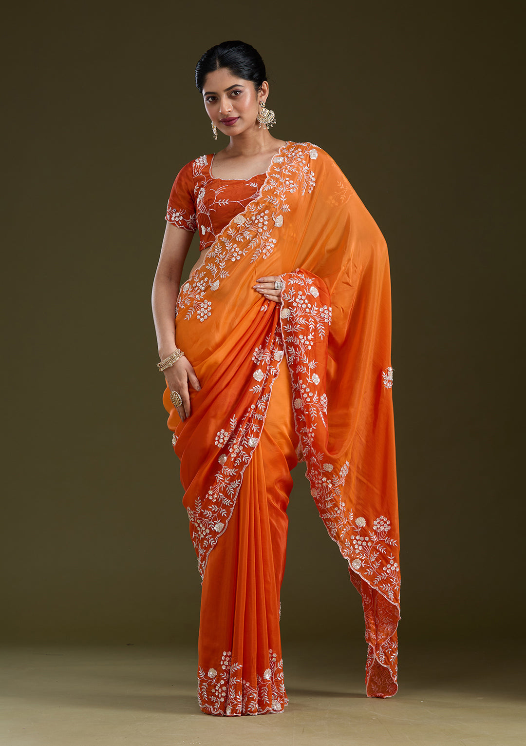 • Bridal Sarees for Mehendi and Sangeet: Pre-wedding festivities are perfect for playful, vibrant sarees. Choose lightweight pieces in bright hues like yellow, orange, or turquoise with mirror or floral embroidery to ensure comfort and charm while you dance the night away.