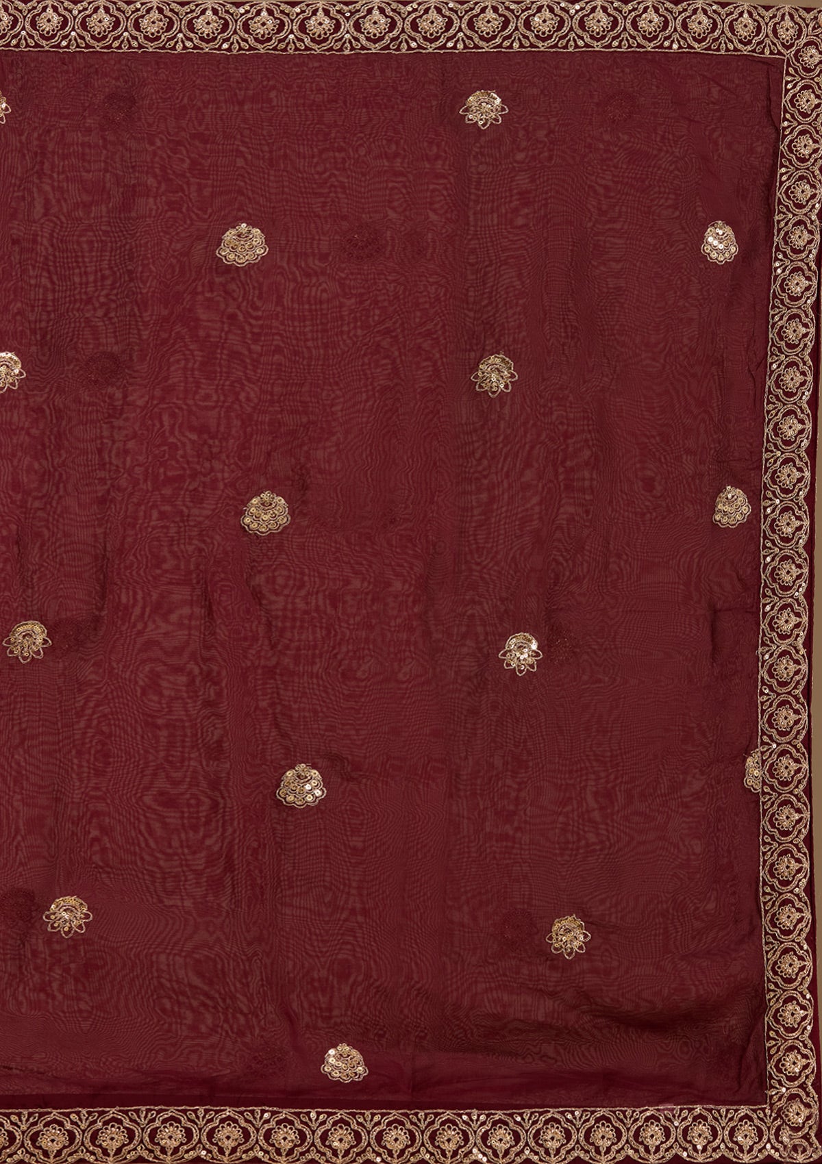 - Maroon Readymade Lehenga in Raw Silk fabric