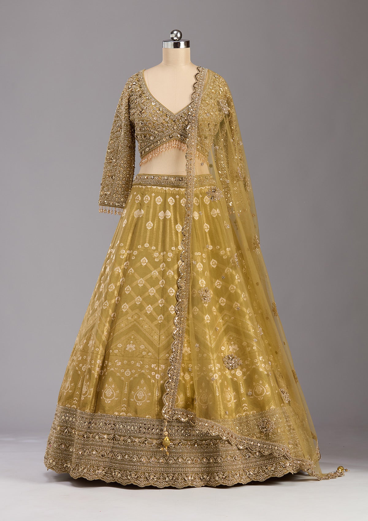 - Mehendi Readymade Lehenga in Banarasi fabric