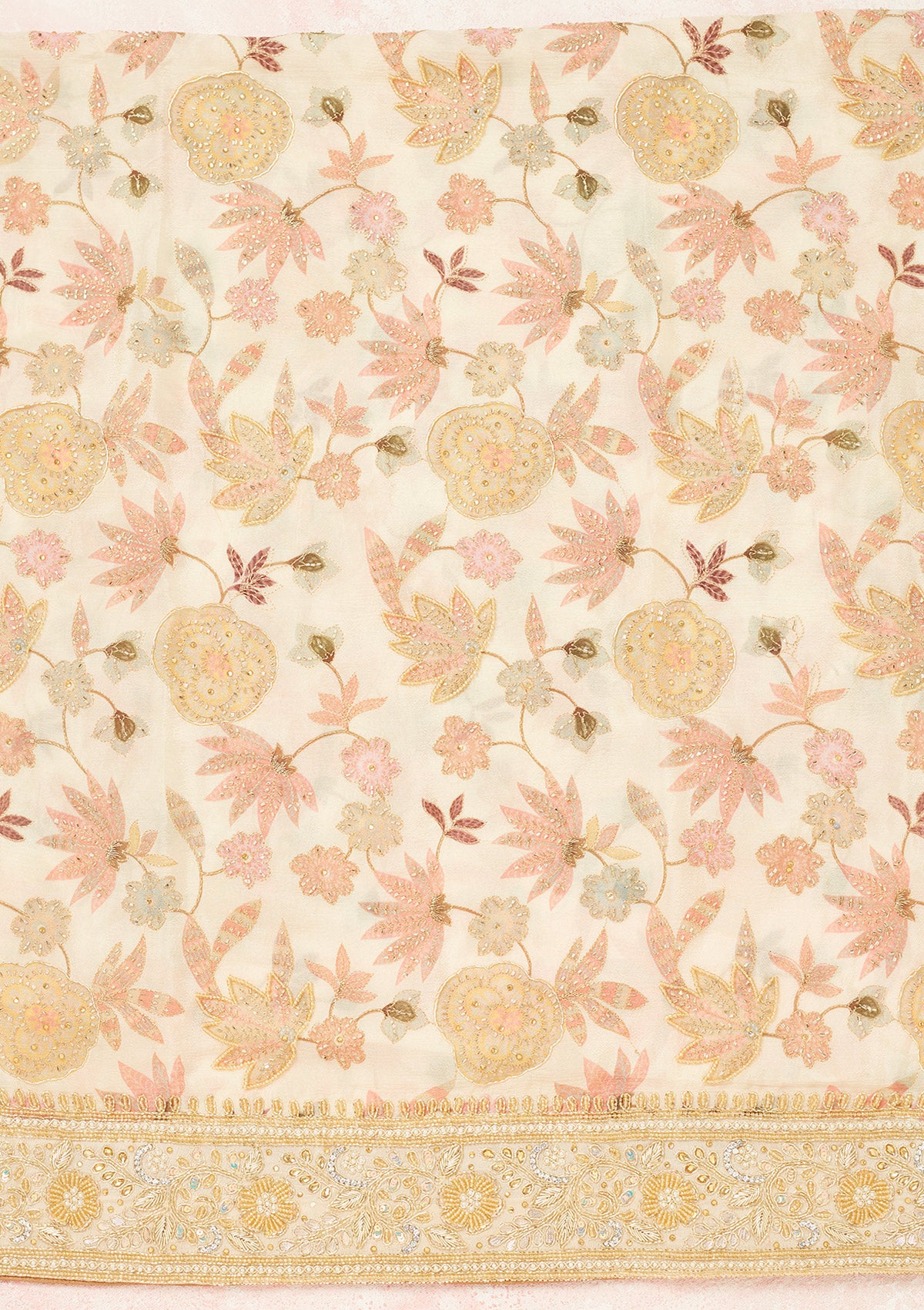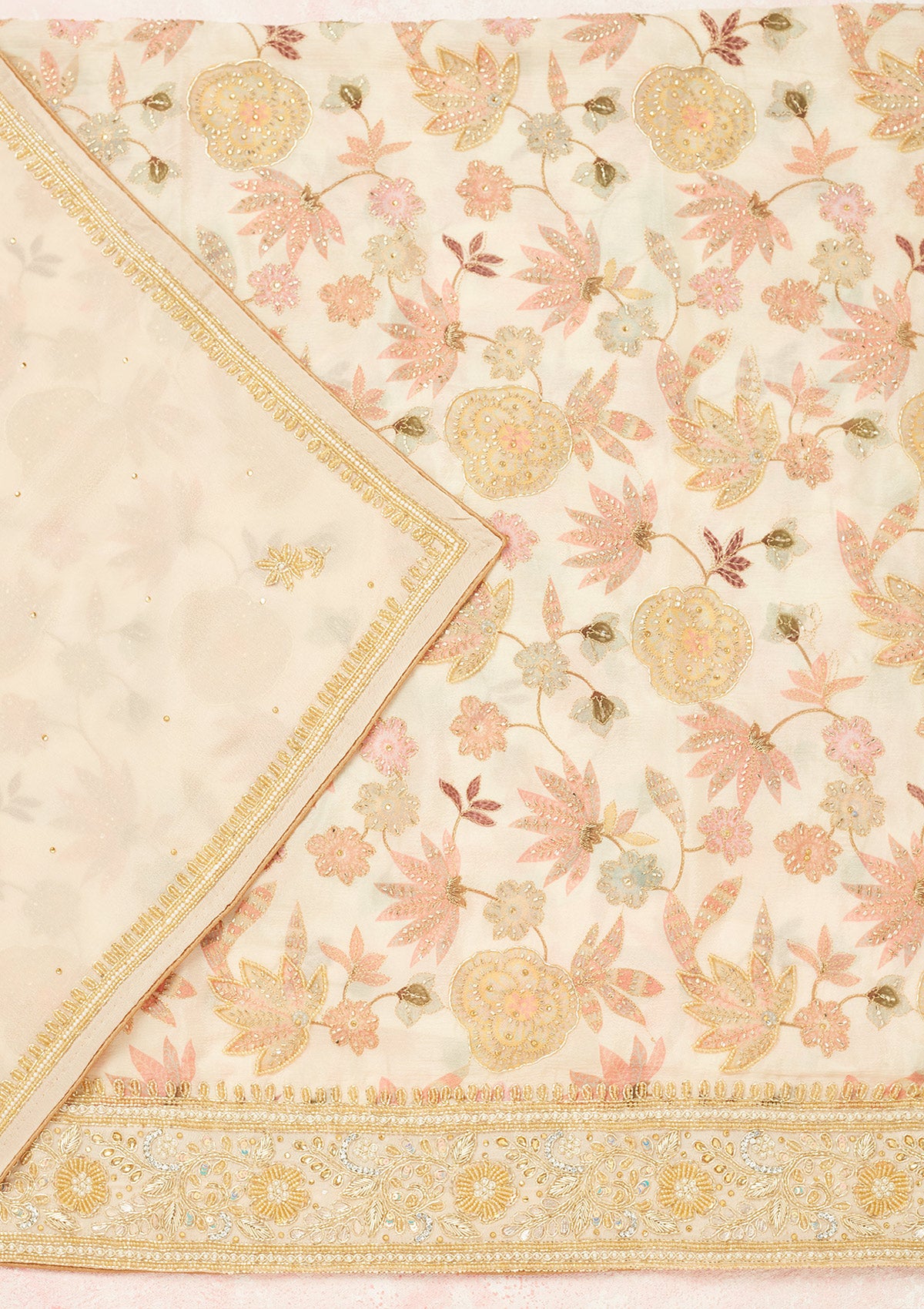 Cream Cutdana Crepe Unstitched Salwar Suit