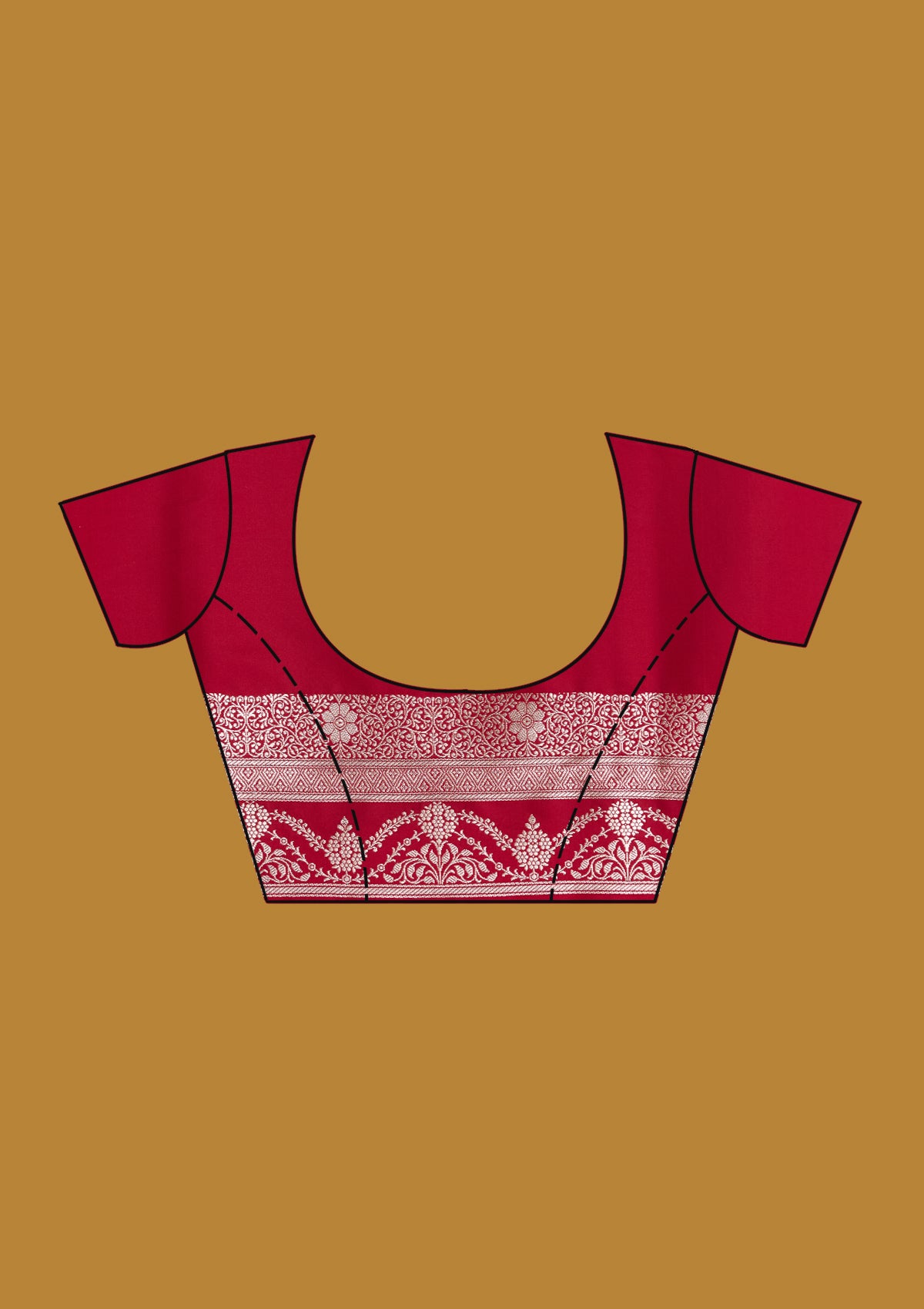 Maroon Silk_Saree in Silk fabric. The Silk_Saree is elevated with Zariwork (Gold) embroidery. It comes with an Unstitched blouse. Comes with the Koskii promise of premium quality.