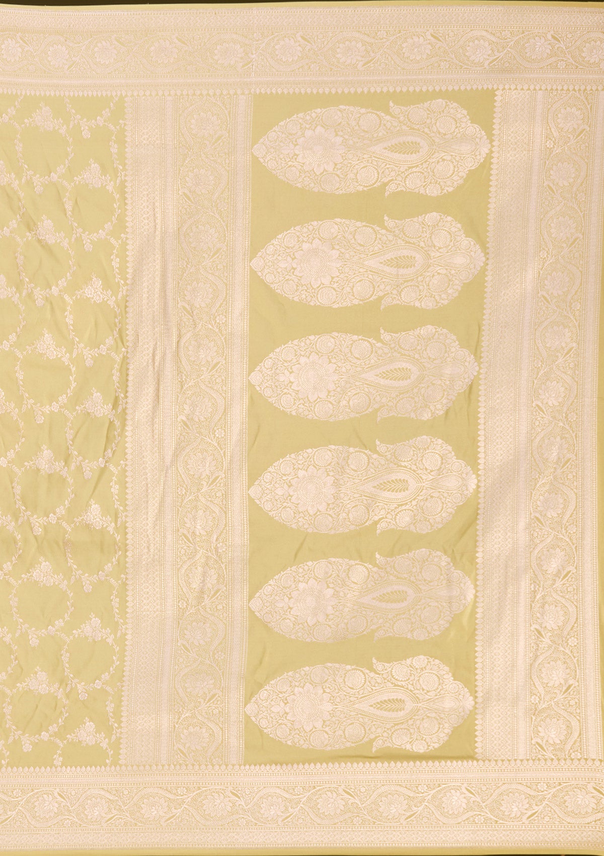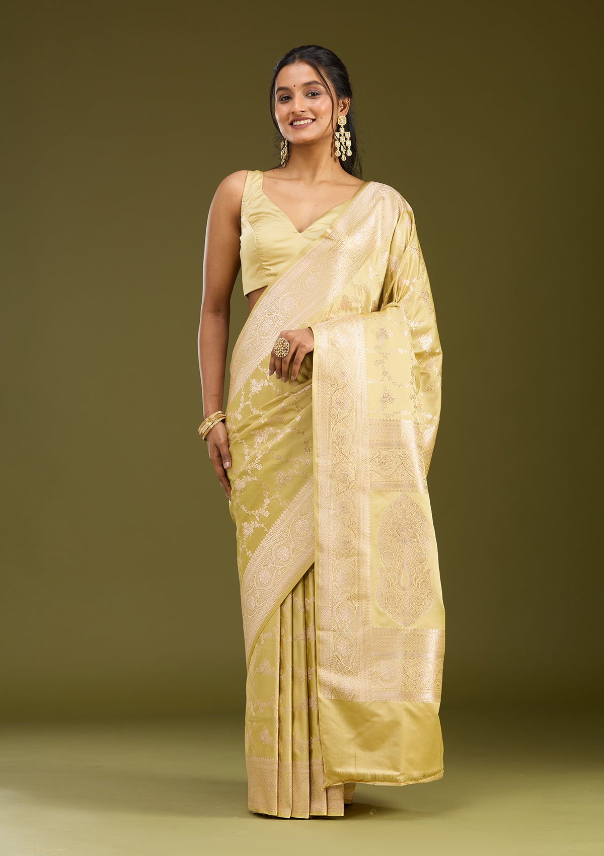 Pista Green Silk_Saree in Art Silk fabric. The Silk_Saree is elevated with Zariwork (Gold) embroidery. It comes with an Unstitched blouse. Comes with the Koskii promise of premium quality.
