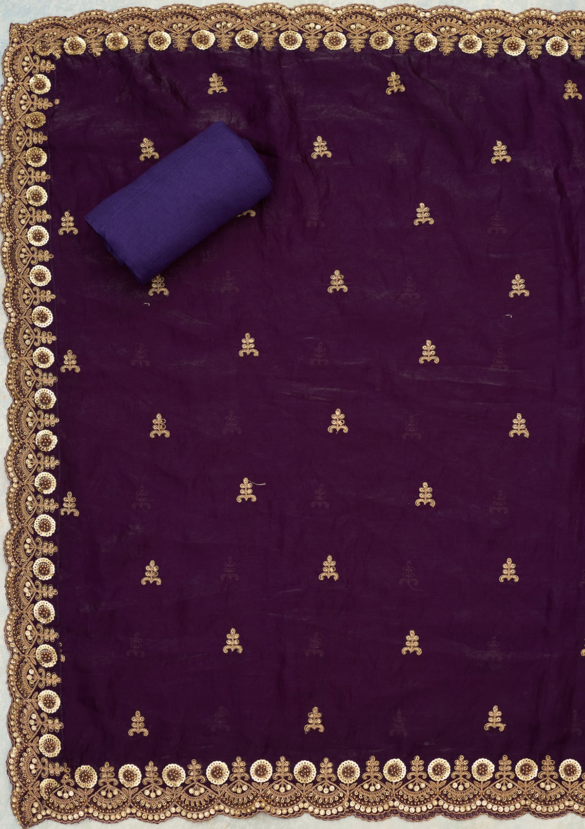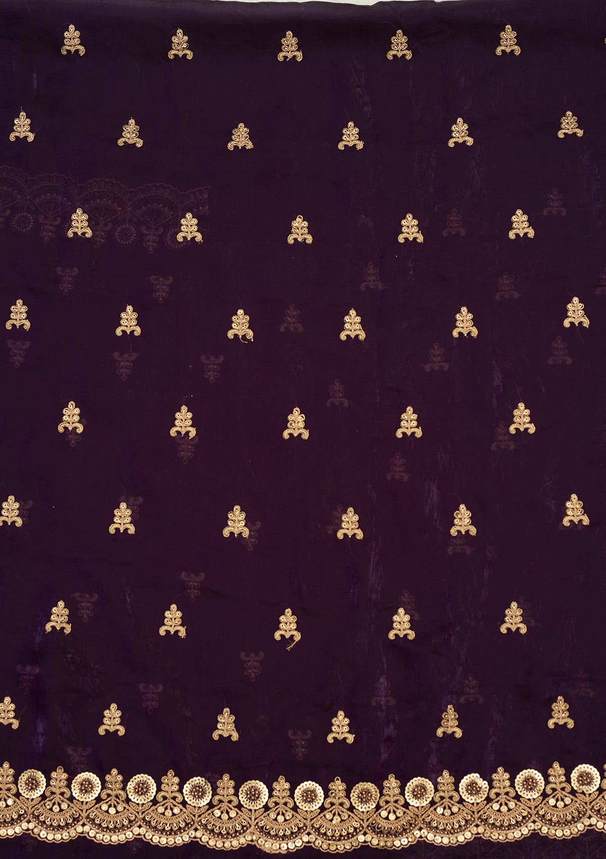 Purple Salwar Suit in Organza fabric. The Salwar Suit is embellished with Cording embroidery. Accompanied with a bottom and dupatta. Comes with the Koskii promise of premium quality.