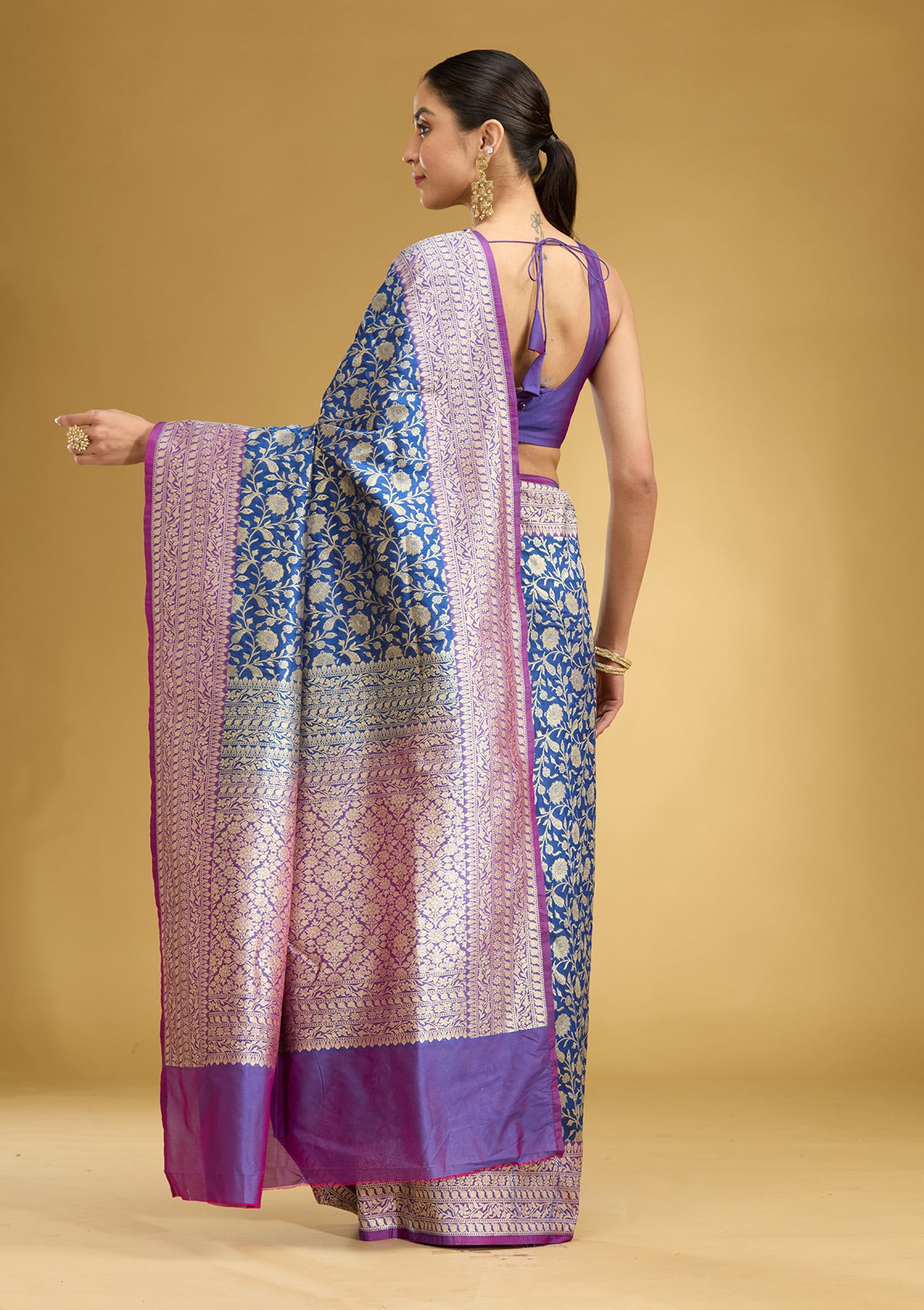 Royal Blue Silk_Saree in Art Silk fabric. The Silk_Saree is elevated with Zariwork (Gold) embroidery. It comes with an Unstitched blouse. Comes with the Koskii promise of premium quality.