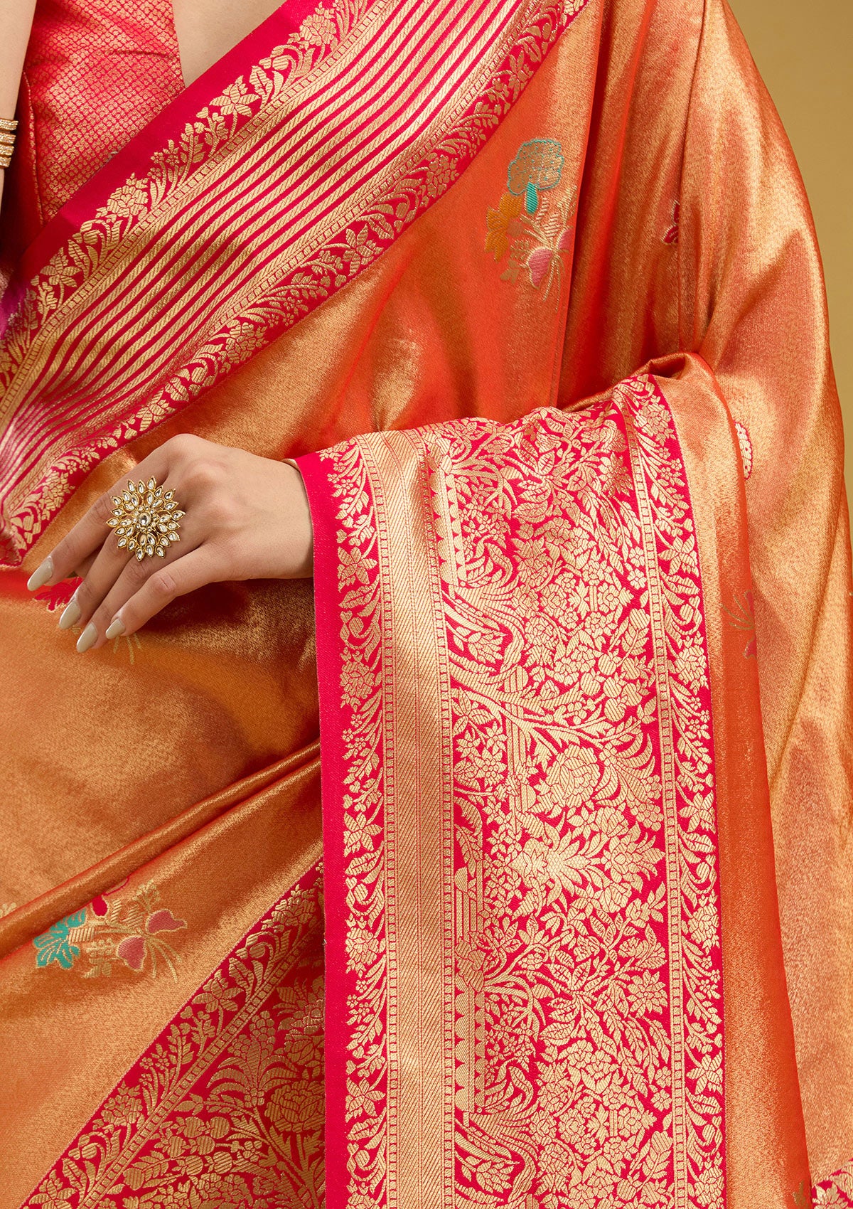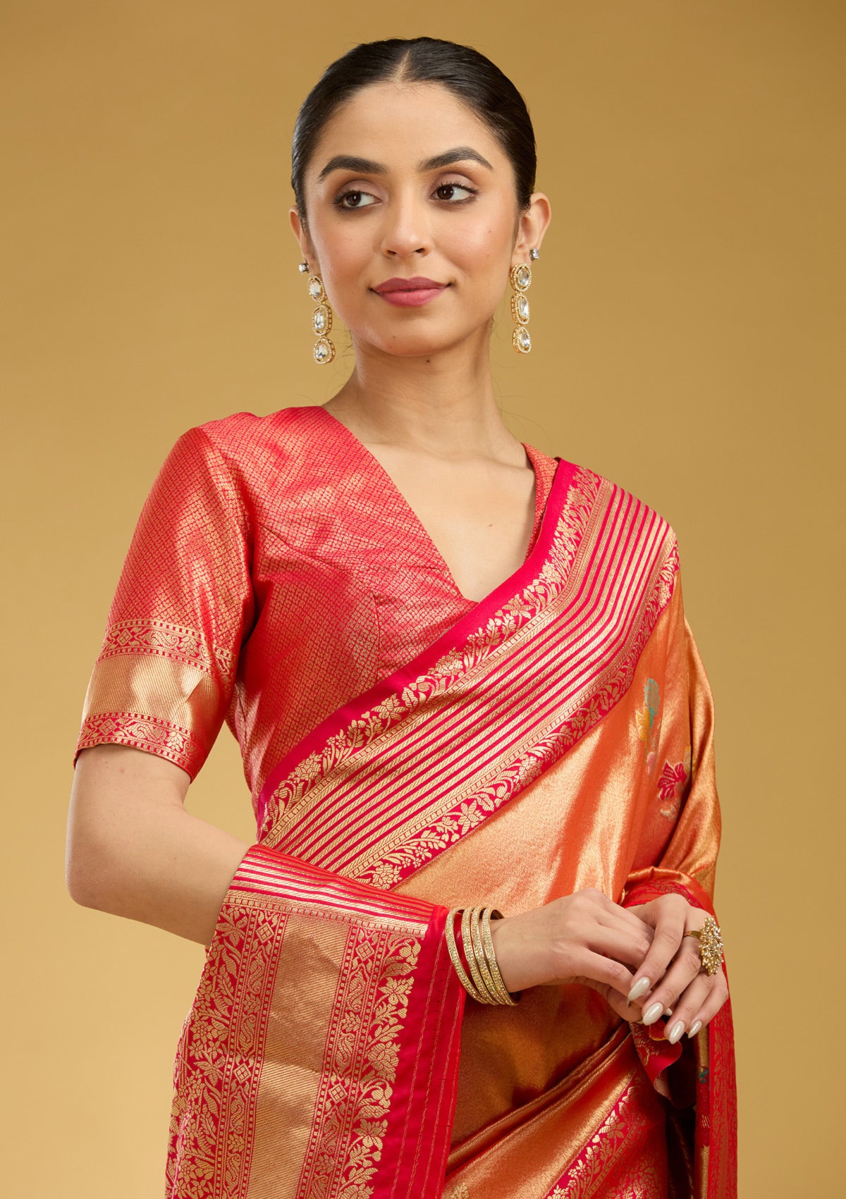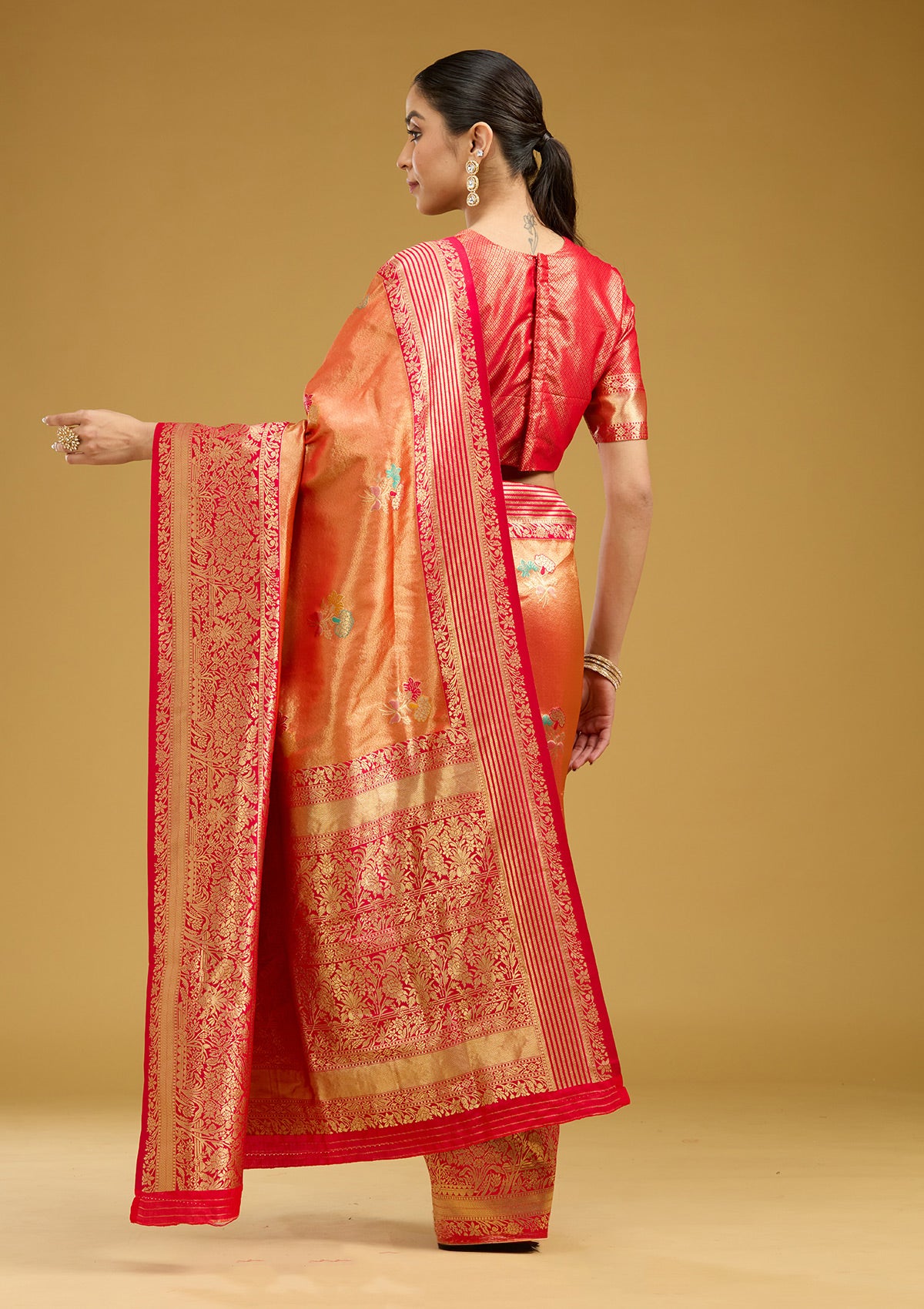 Rust Silk_Saree in Art Silk fabric. The Silk_Saree is elevated with Zariwork embroidery. It comes with an Unstitched blouse. Comes with the Koskii promise of premium quality.