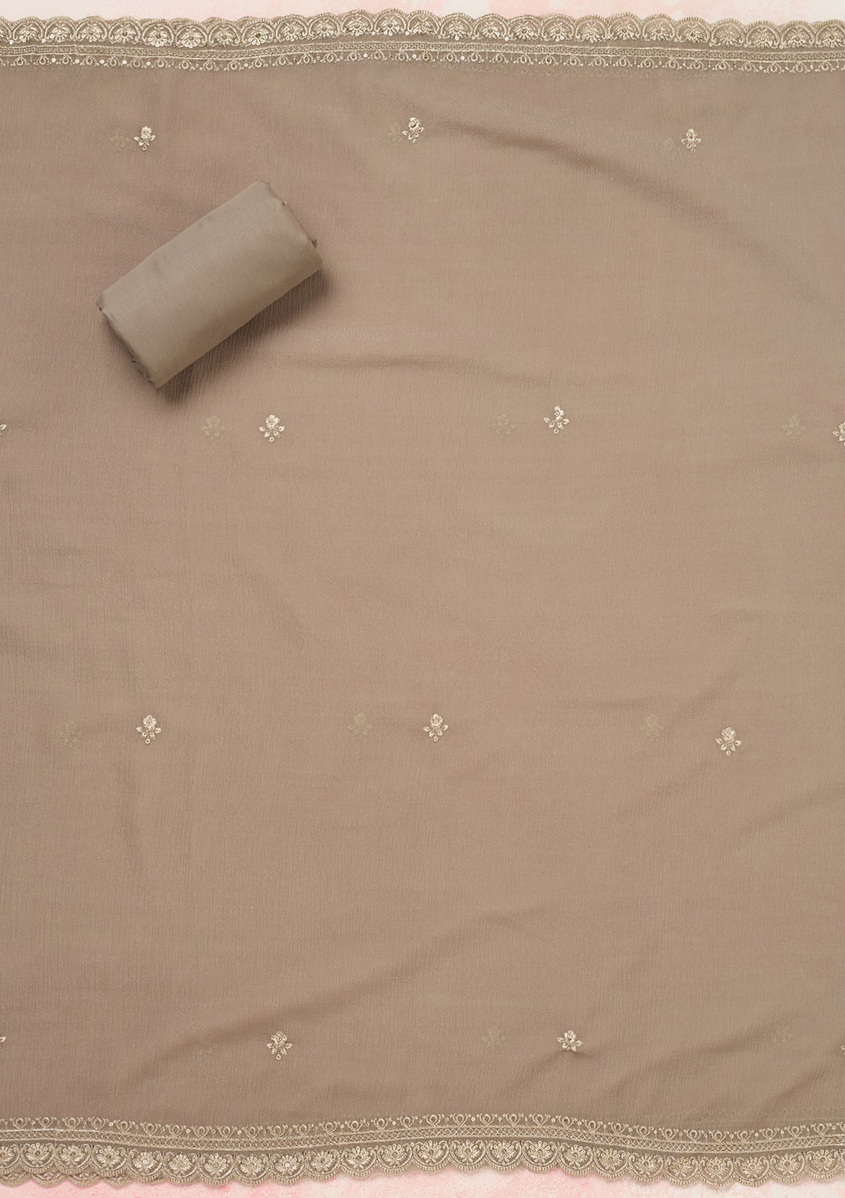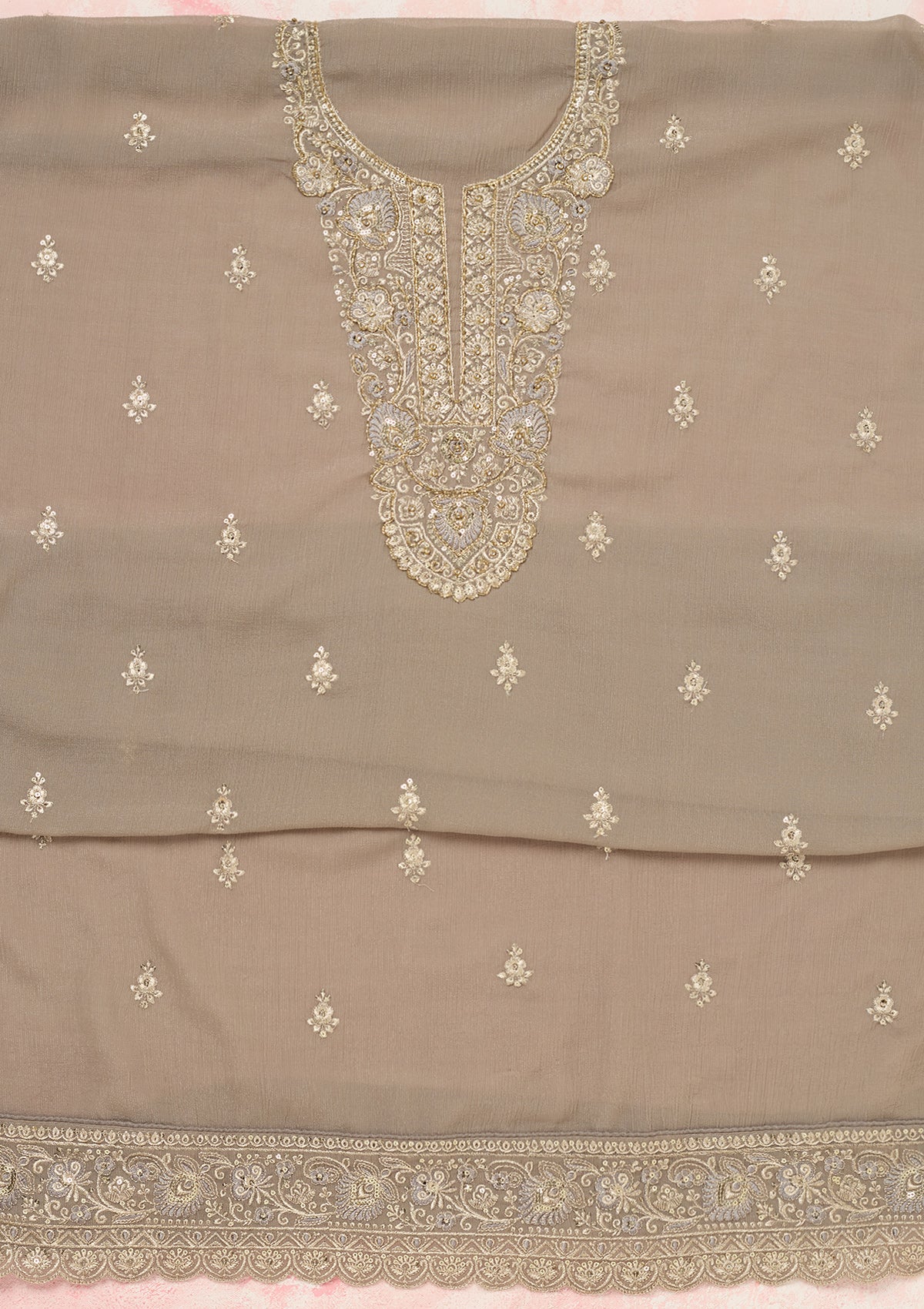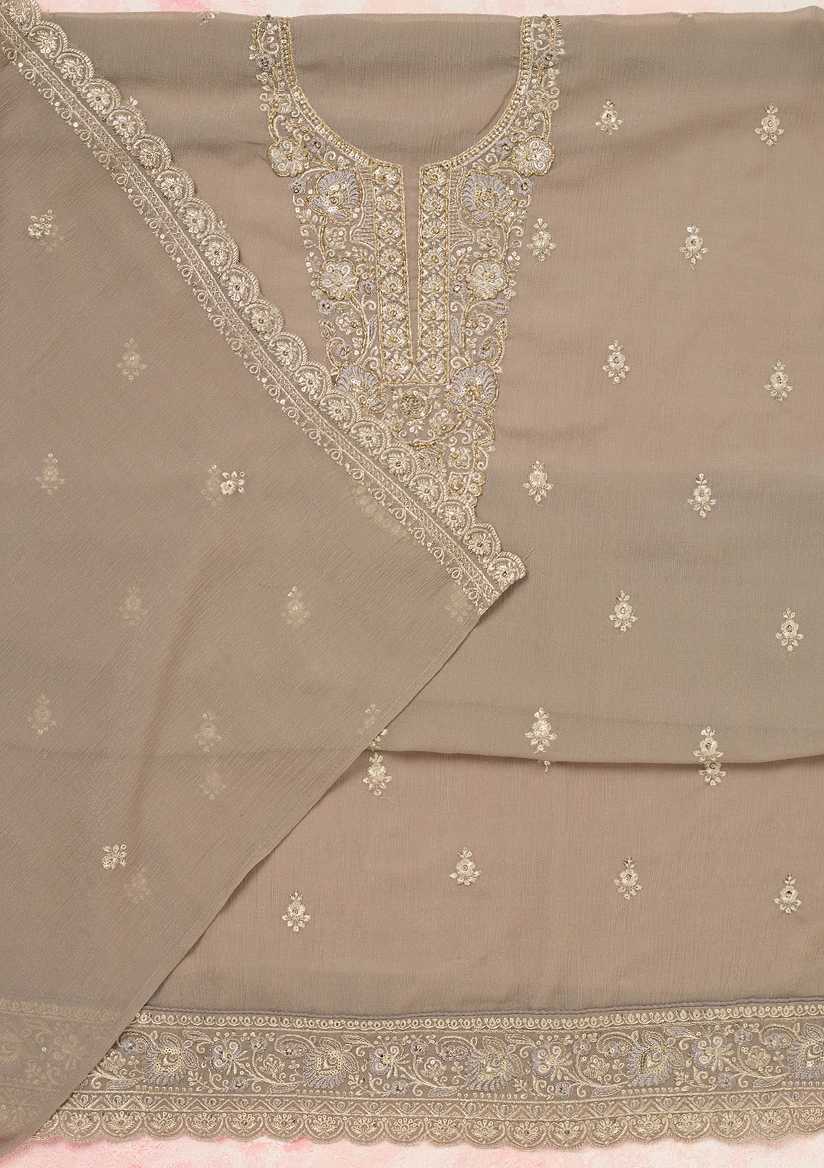 Grey Zariwork (Gold) Chinon Unstitched Salwar Suit