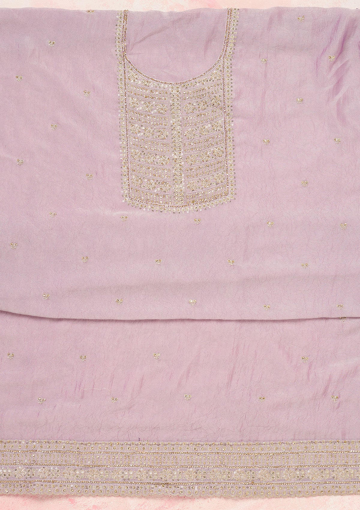 Lavender Zariwork (Gold) Chinon Unstitched Salwar Suit