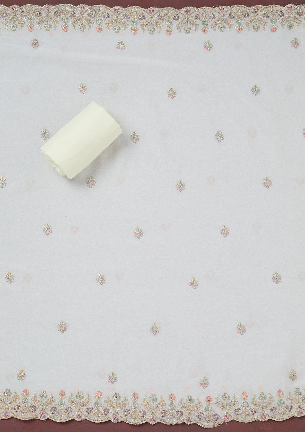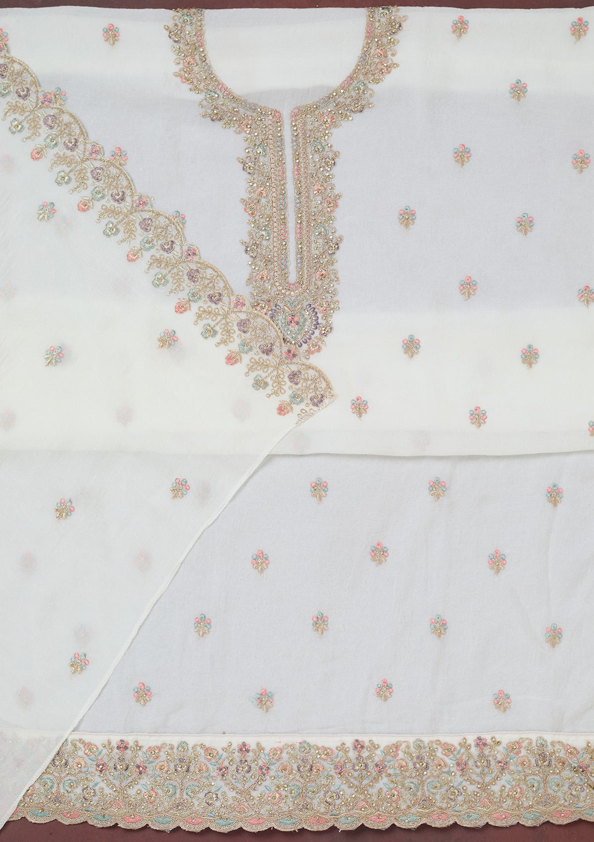 White Zariwork (Gold) Chinon Unstitched Salwar Suit